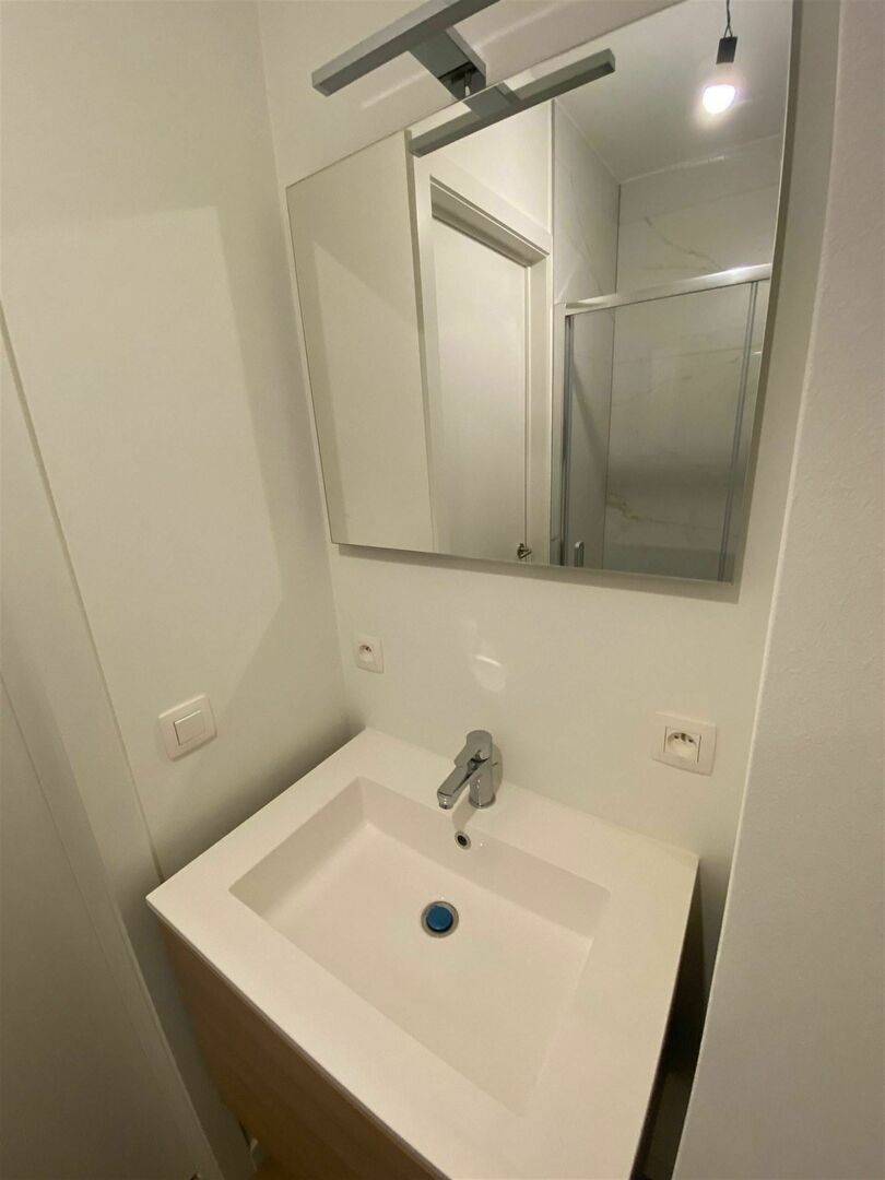 Inkomhal met vestiaire / wc met handwas / living met eetplaats en super-ingerichte open keuken (totale opp.: 30m²) / berging met was- en stookplaats / slaapkamer (10m²) met inmaakkast / badkamer met wastafel en douche.