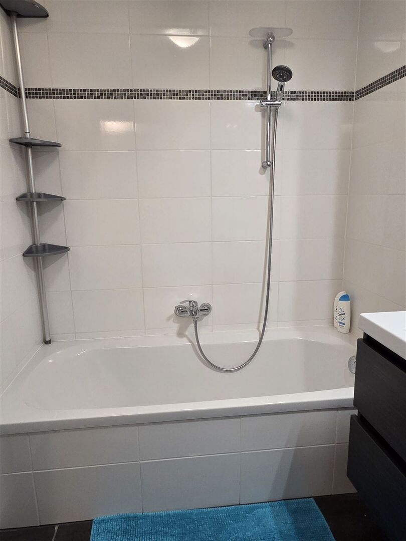 Inkomhal / wc met handwas / living met eetplaats en ingerichte open keuken (totale opp.: 35m²) met toegang tot terras en tuintje / 1 slaapkamer (3,8 x 3,2m) met toegang tot terras / badkamer met wastafel en ligbad met douchemogelijkheid / berging met was- en stookplaats.