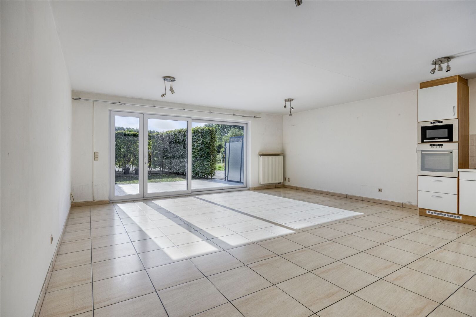 RUIM EN INSTAPKLAAR GELIJKVLOERSAPPARTEMENT 104M² MET 2 SLAAPKAMERS, TERRAS, TUINTJE EN GARAGE.