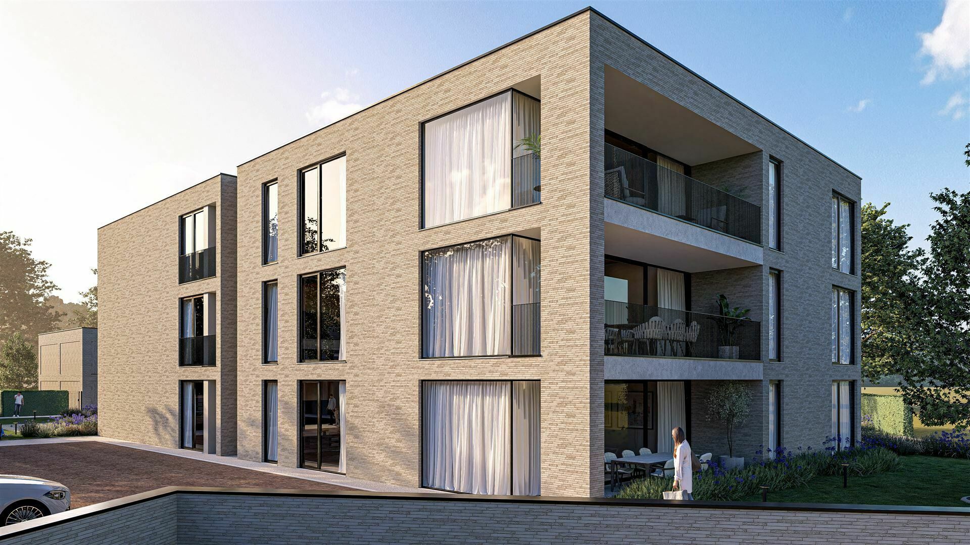 De ondergrondse parkeerplaatsen voor je wagen en fietsen, zorgen voor een autovrij woonerf, waar bewoners in alle rust kunnen vertoeven.
