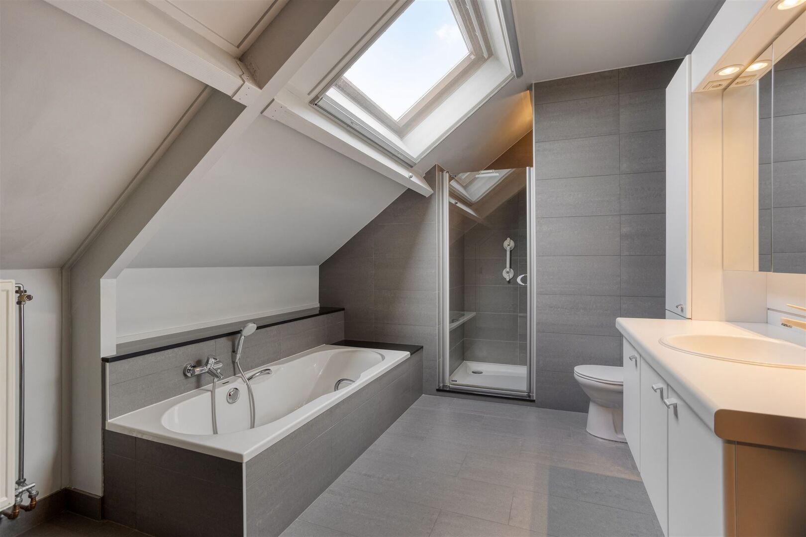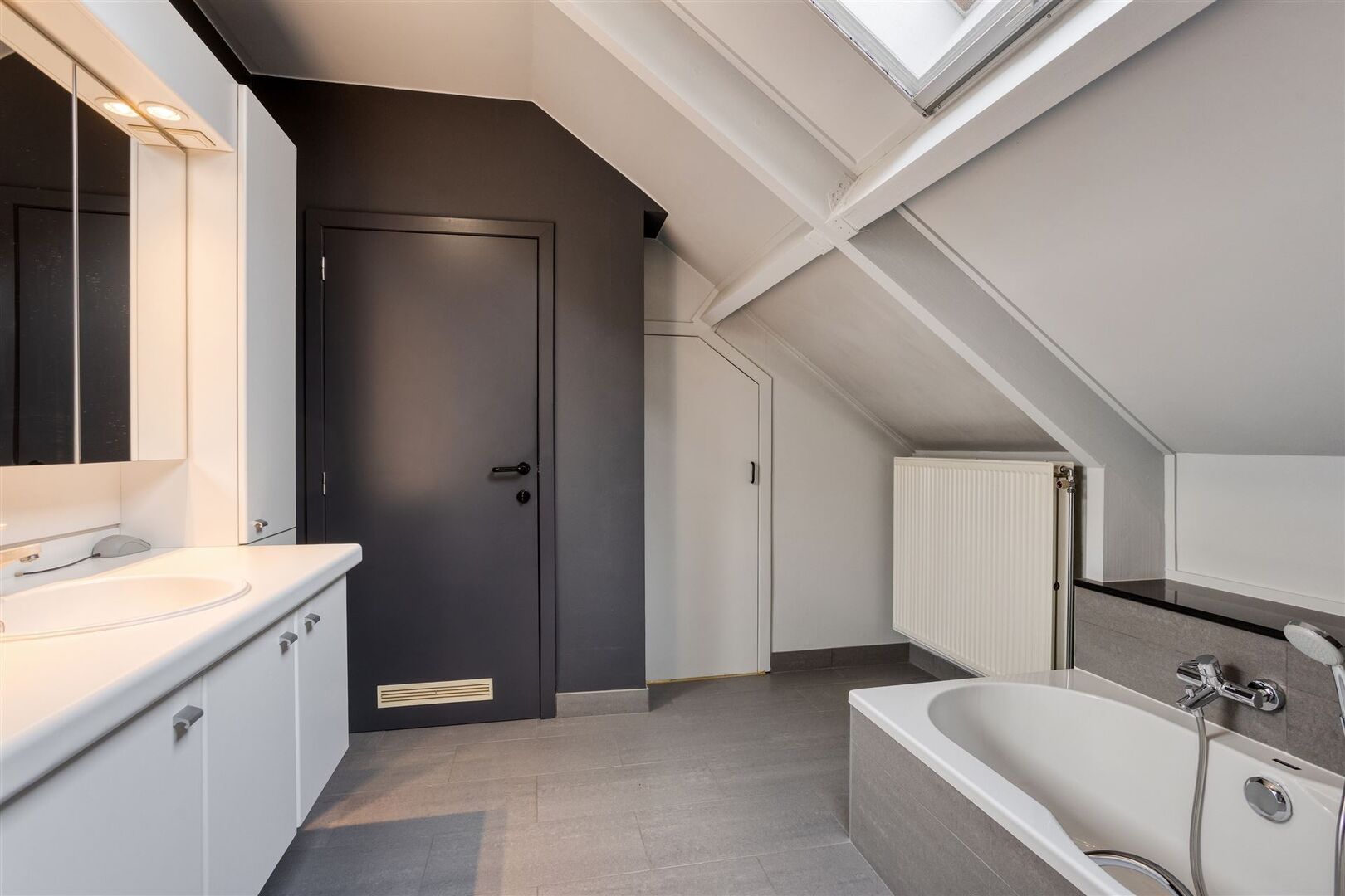 4de verdieping: Nachthal (4 x 1,4m) / 3 ruime slaapkamers (35m²; 32m²; 4,9 x 3m) / badkamer (11m²) (in 2015 vernieuwd) met wastafel, ligbad, douche en wc.
