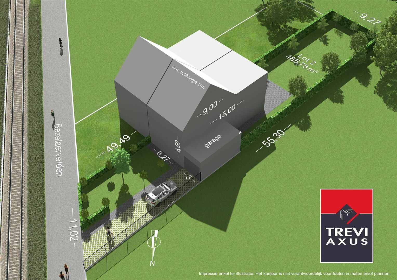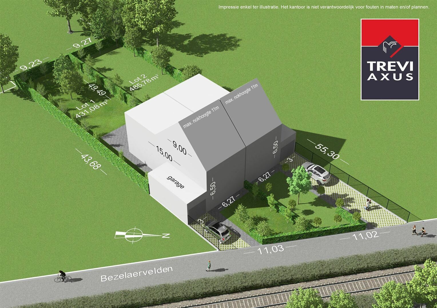 Het perceel met een breedte van 11 meter en biedt mogelijkheden voor het bouwen van een ruime halfopen bebouwing.