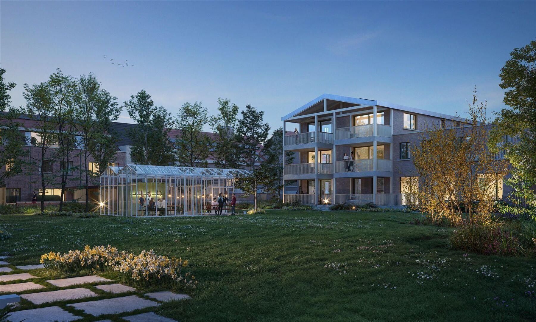 De collectieve binnentuin met serre ingericht als tuinpaviljoen is het centrale pronkstuk en vormt het perfecte decor voor een zomerse picknick met vrienden of babbel met je buren.