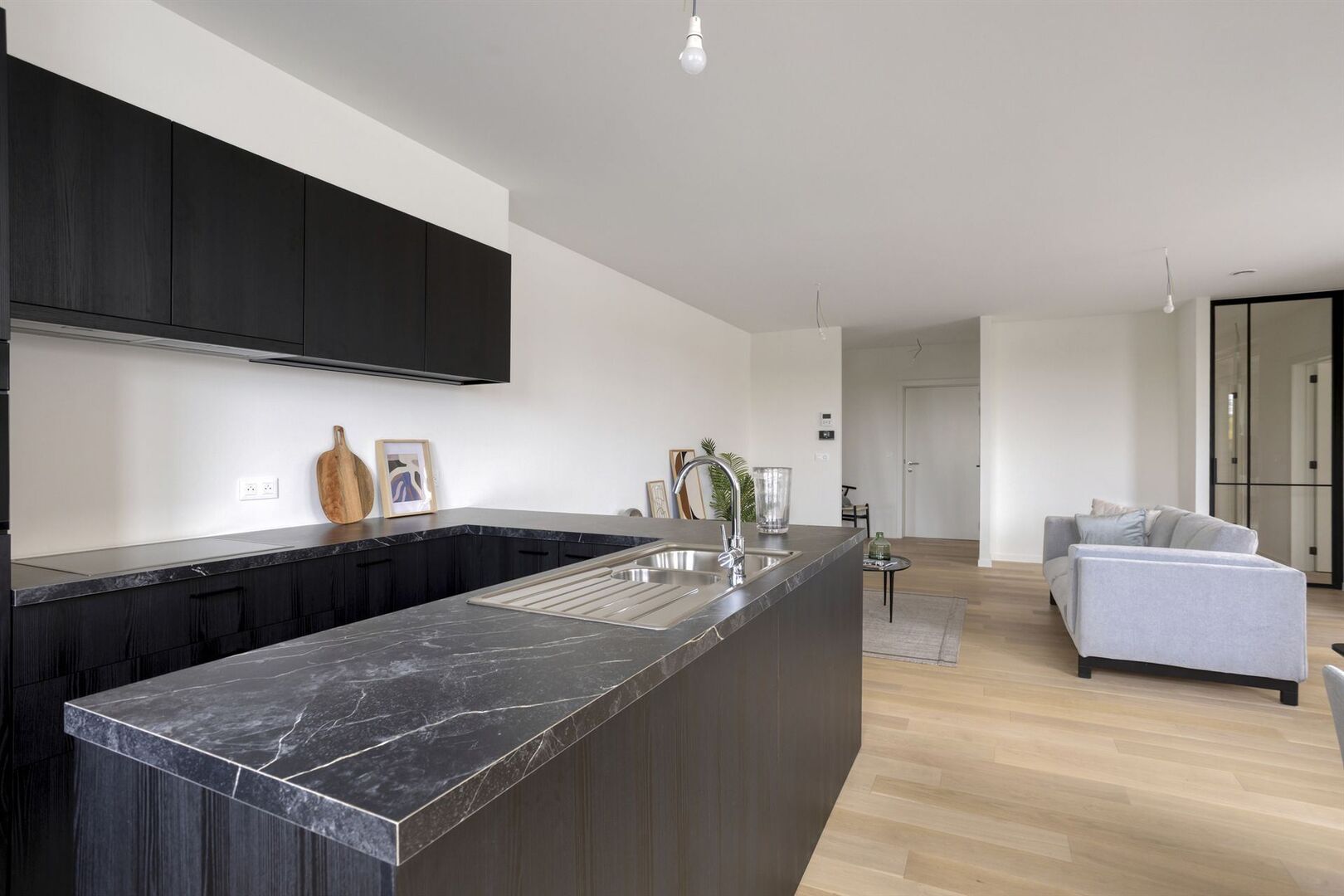 Het appartement heeft een mooie afwerking gekregen door o.a. een fineerparket, een stijlvolle steellook deur en zwart sanitair kraanwerk.
