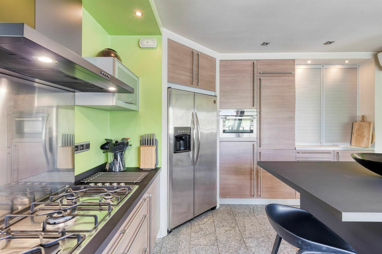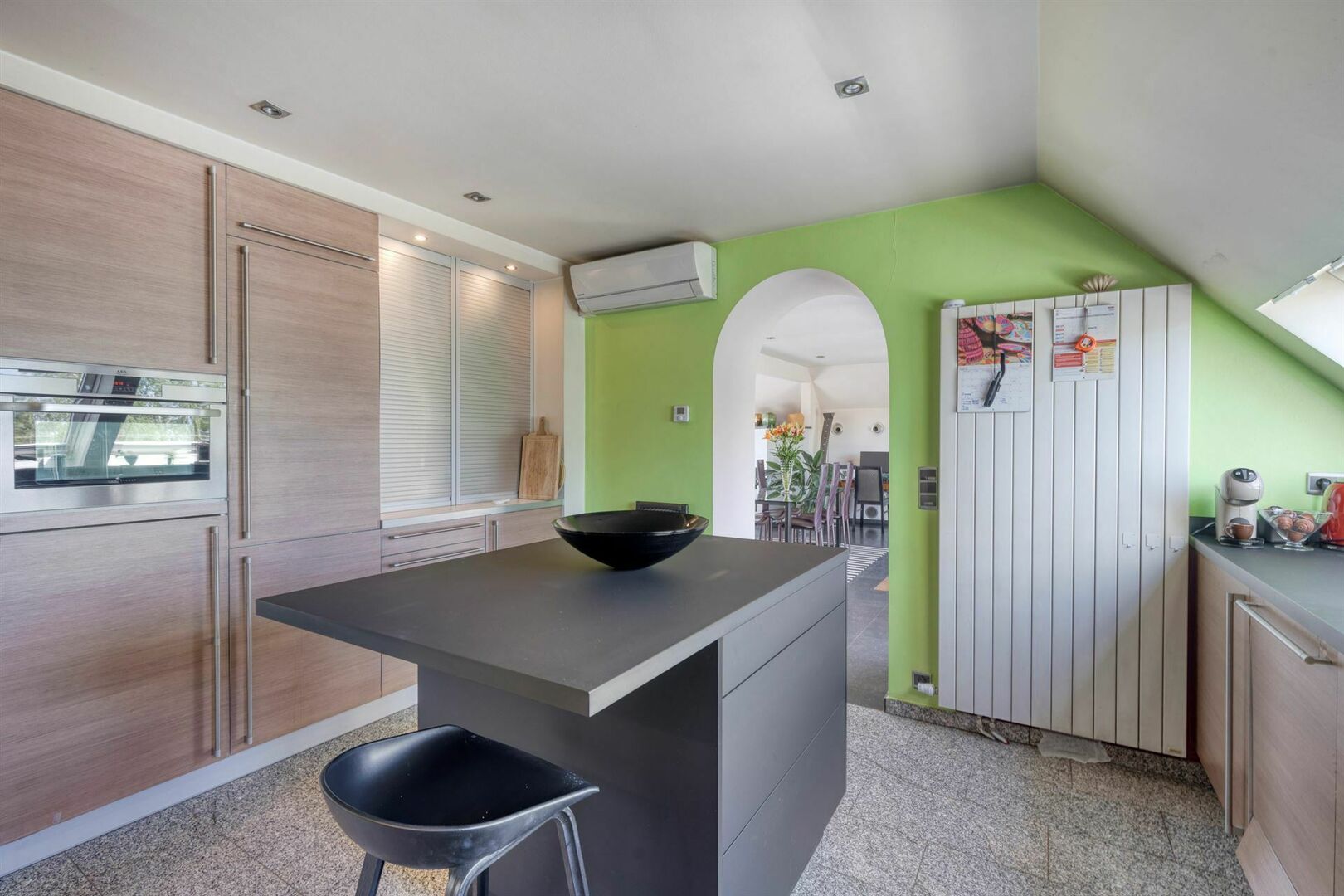 Indeling: Stijvolle inkomhal met vestiaire, vloerbekleding in natuursteen / ruime, sfeervolle leefruimte (55 m²) met salon en eetplaats, gashaard, airco en inbouwspots, natuursteen vloerbekleding / kwalitatieve keuken met laden en kasten, uitgerust met gasvuur, koelkast, oven, vaatwasser, ... / bergruimte / master bedroom met inbouwkast en aangrenzende badkamer uitgerust met ligbad en inloopdouche / 2 slaapkamers met inbouwkasten / badkamer met ligbad / aangenaam, ruim terras (15 m²) met zonneluifel en zicht op achtergelegen tuin van de residentie.