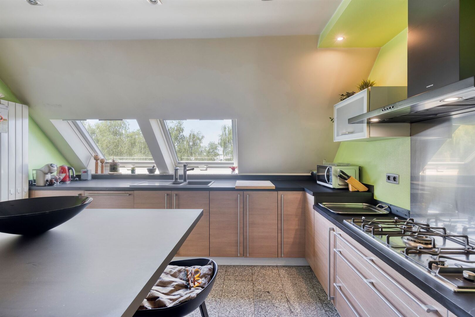 Gelegen op de dakverdieping van een standingvolle residentie aan de rand van het centrum van Willebroek.