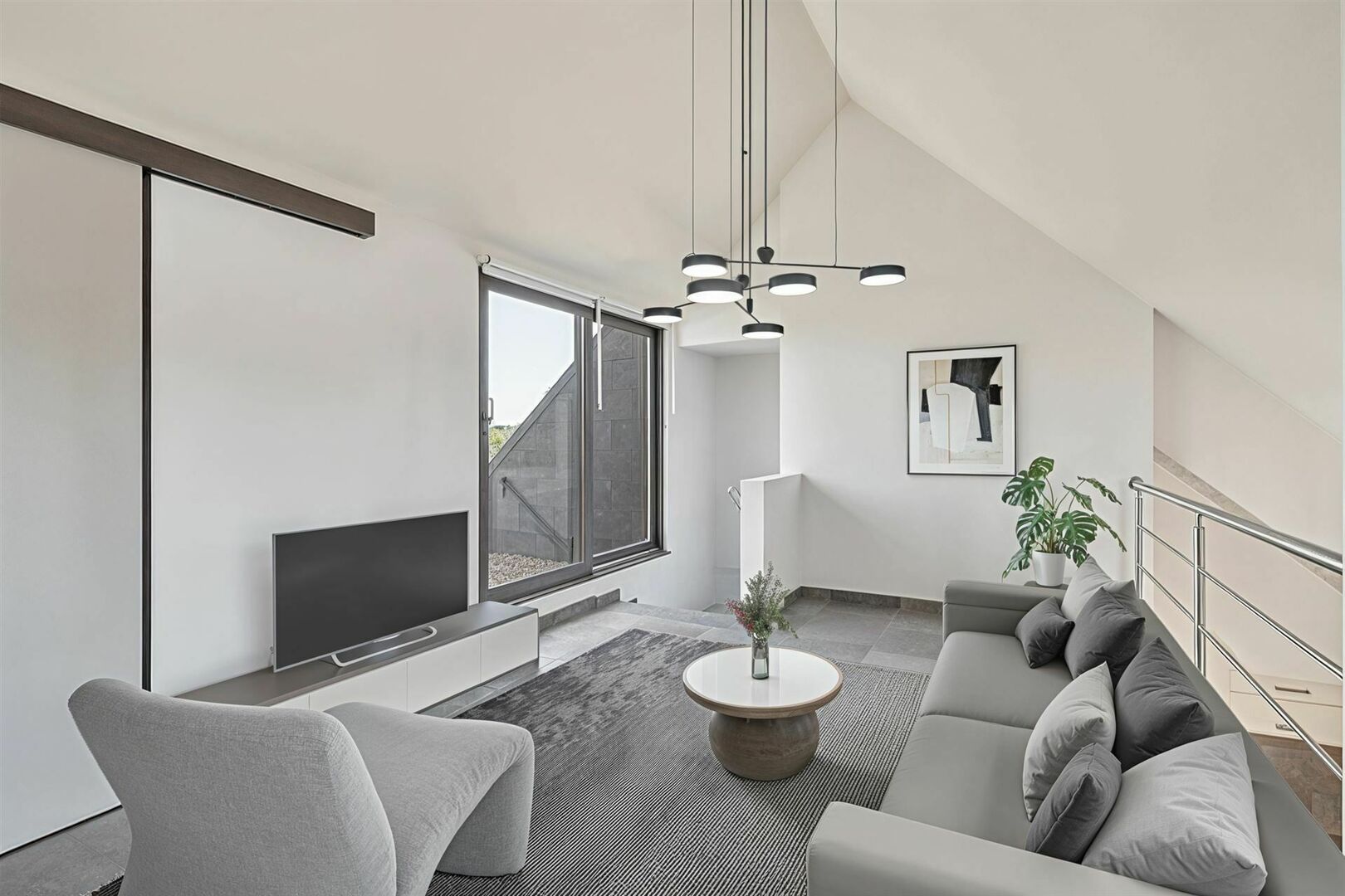 3de verdieping: Living (15m²) met toegang tot terrasje (4m²) / berging met was- en stookplaats (2,8 x 1,6m).