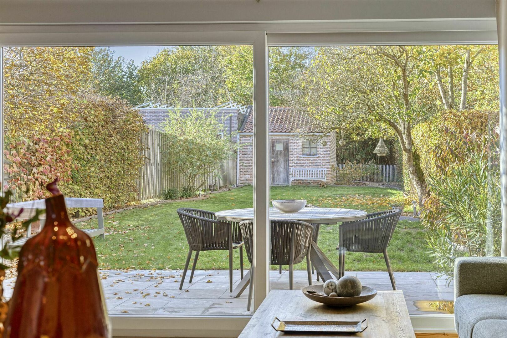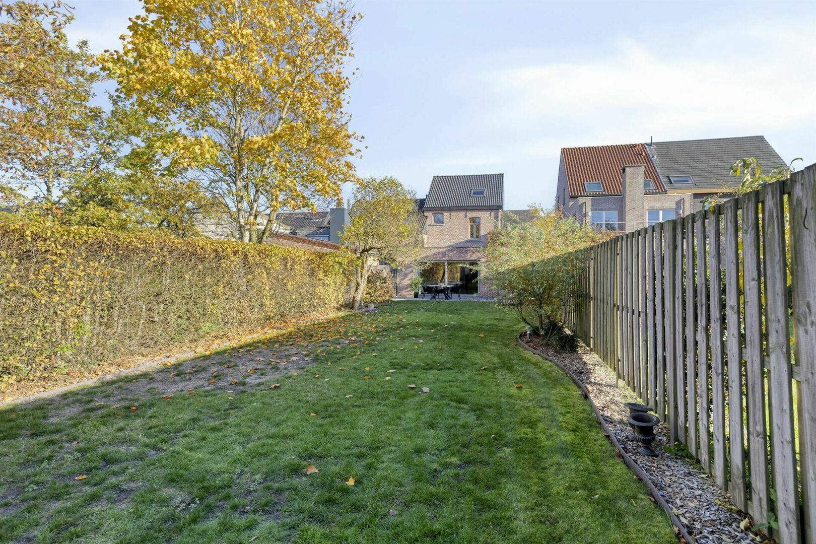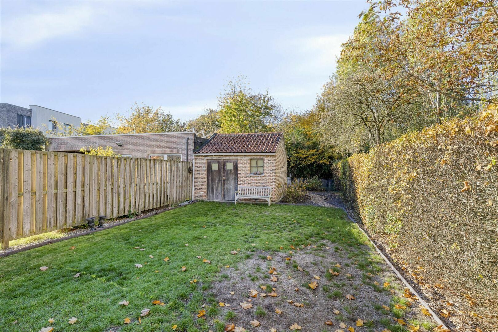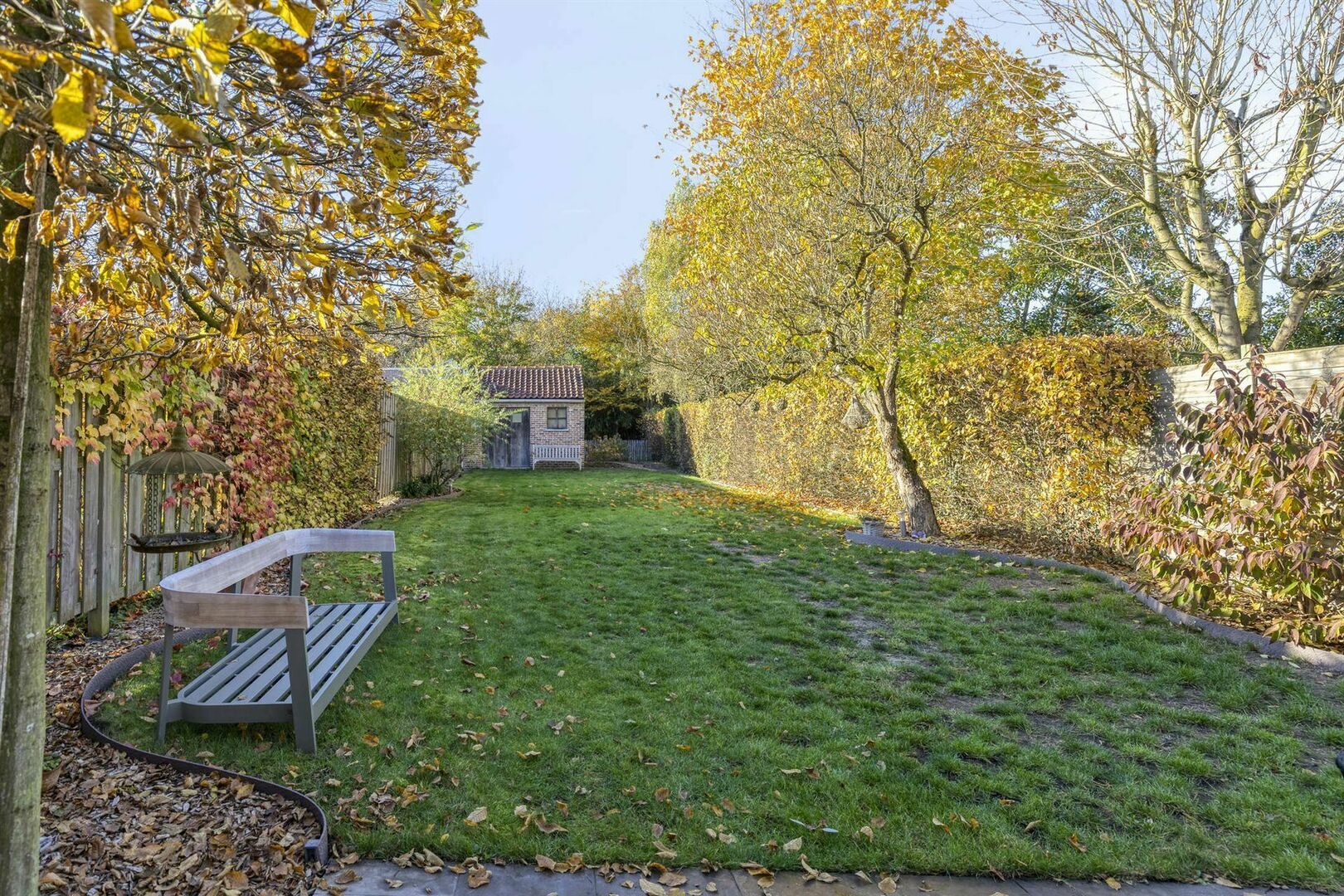 Mooi aangelegde tuin met kwalitatieve gemetste tuinberging / oprit met autostaanplaats.
