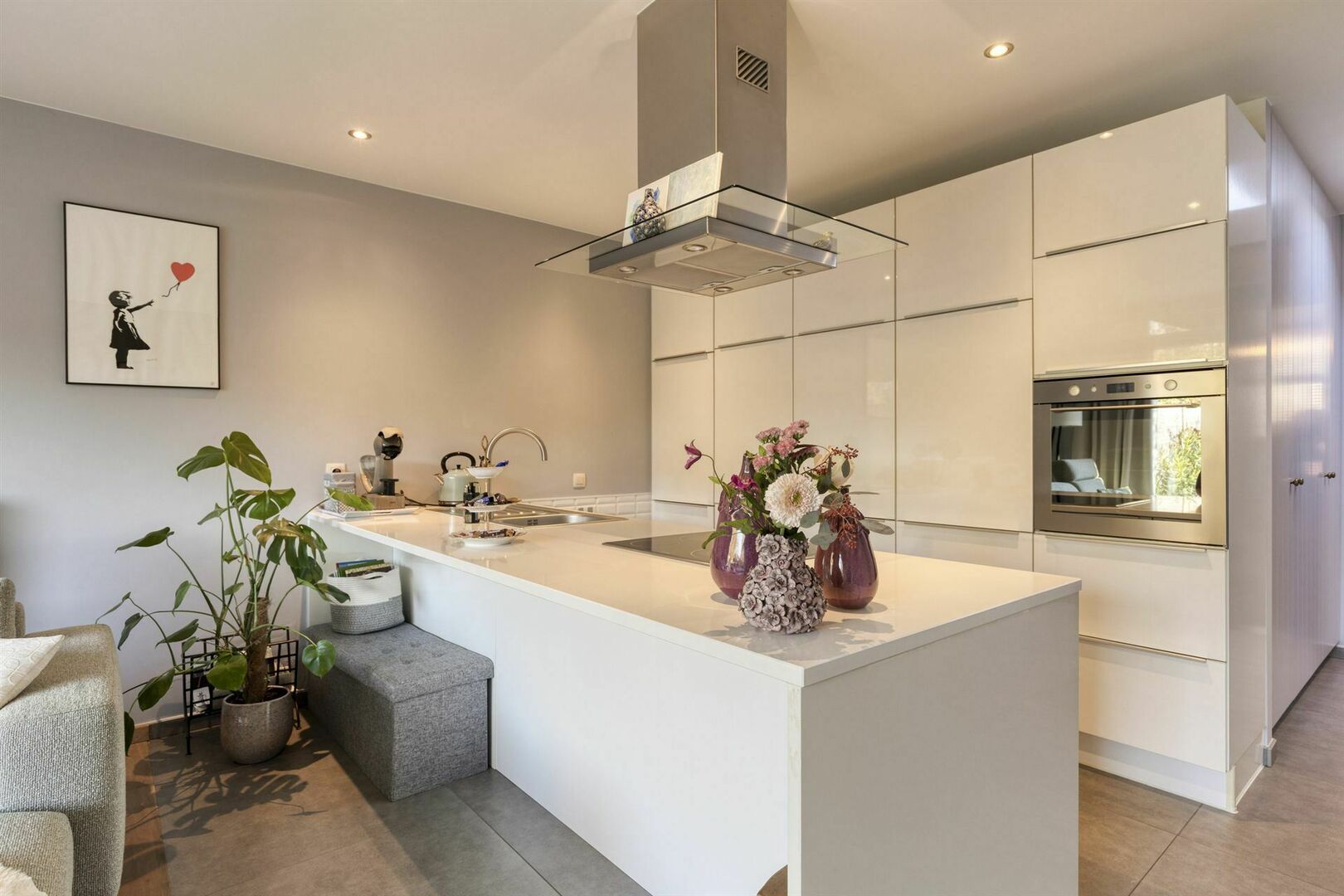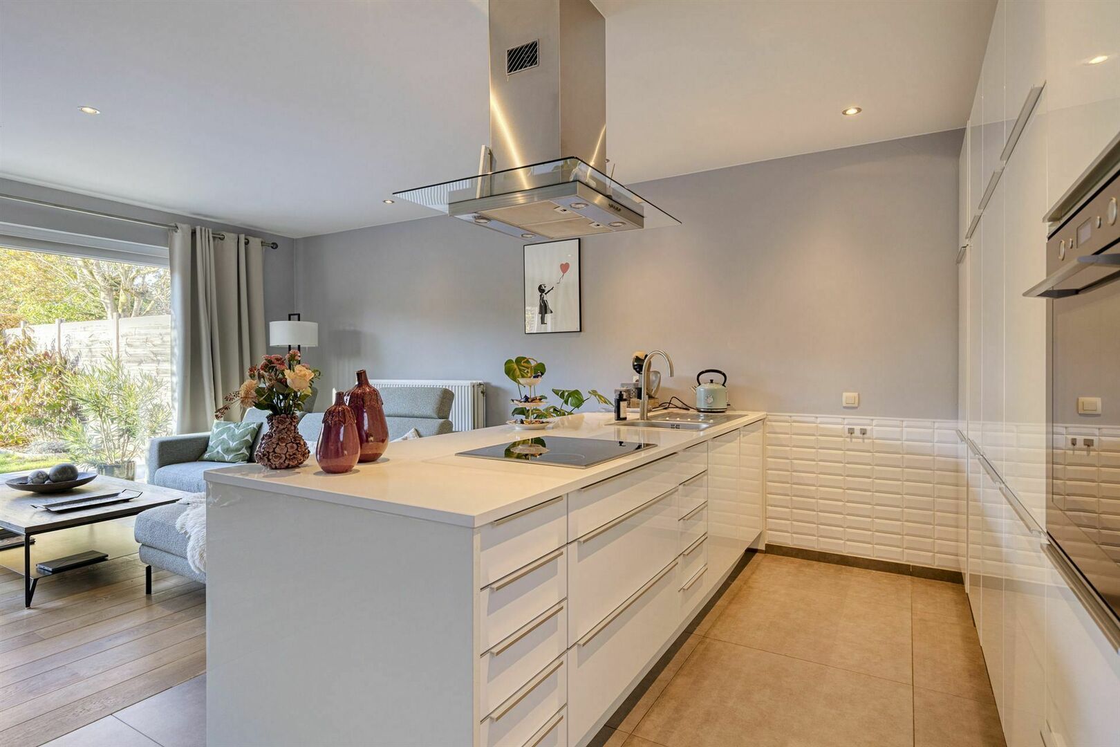 kwalitatieve super-ingerichte open keuken (33m²) met toegang tot terras en tuin / zij-ingang met inmaakkast / badkamer (2,6 x 1,9m) met dubbele wastafel en inloopdouche.