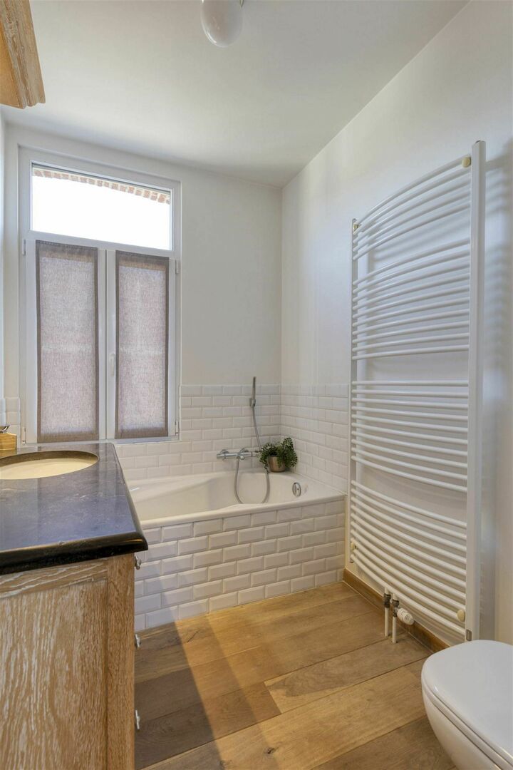 De woning werd kwalitatief gerenoveerd in 2011 met respect voor de authentieke elementen en beschikt over mooie parketvloeren, inbouwkasten en een gashaard.
