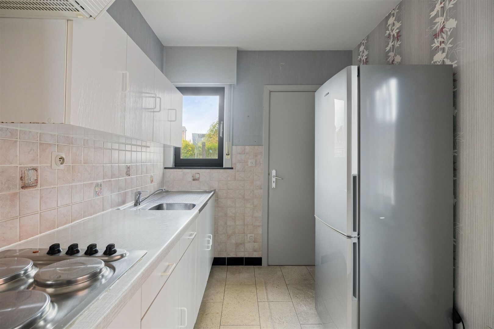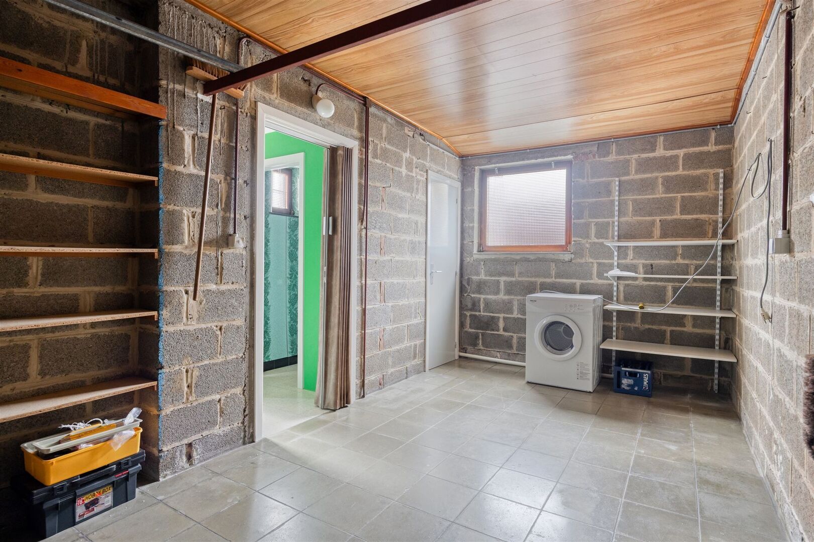 Gelijkvloers: Inkomhal met vestiaire / living met eetplaats (7,2 x 3,7m) / keuken (3,7 x 2,2m) / wc / garage (5,5 x 2,6m) met aangrenzend wasplaats.