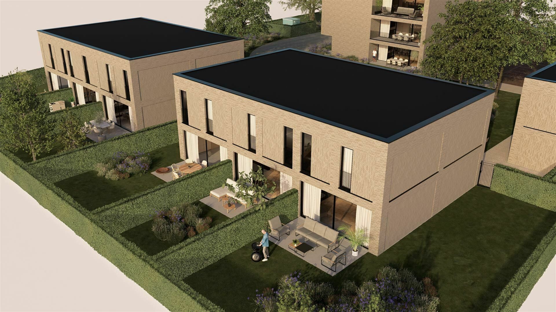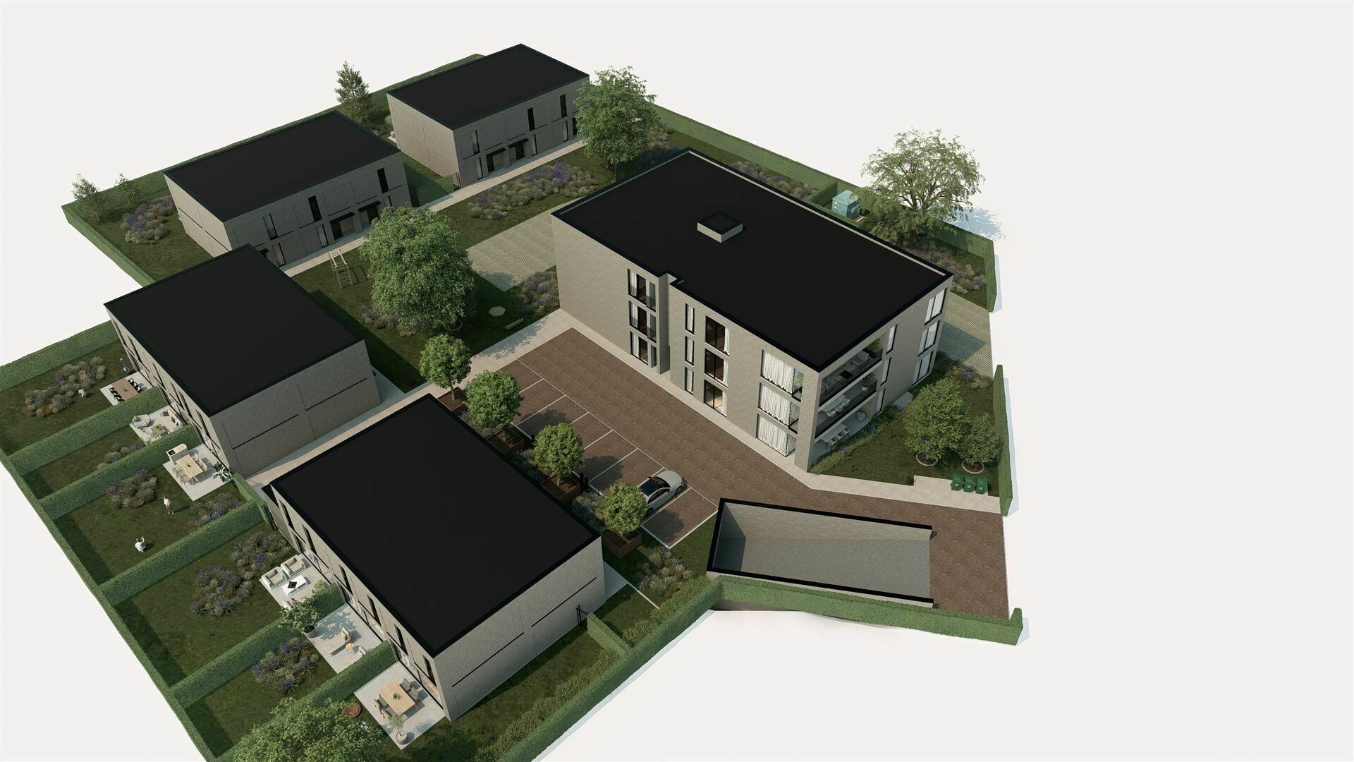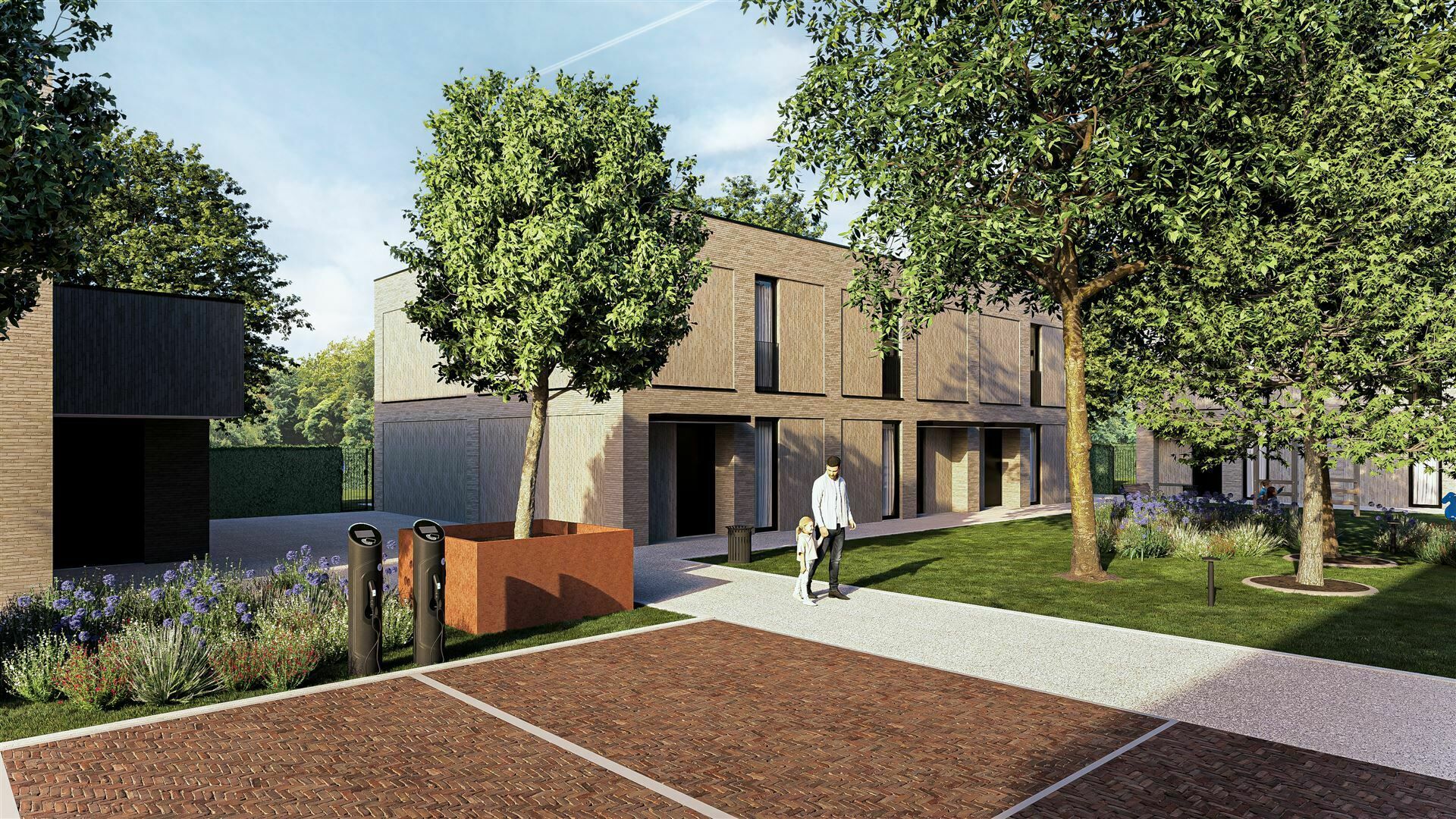 De ondergrondse parkeerplaatsen voor je wagen en fietsen, zorgen voor een autovrij woonerf, waar bewoners in alle rust kunnen vertoeven.