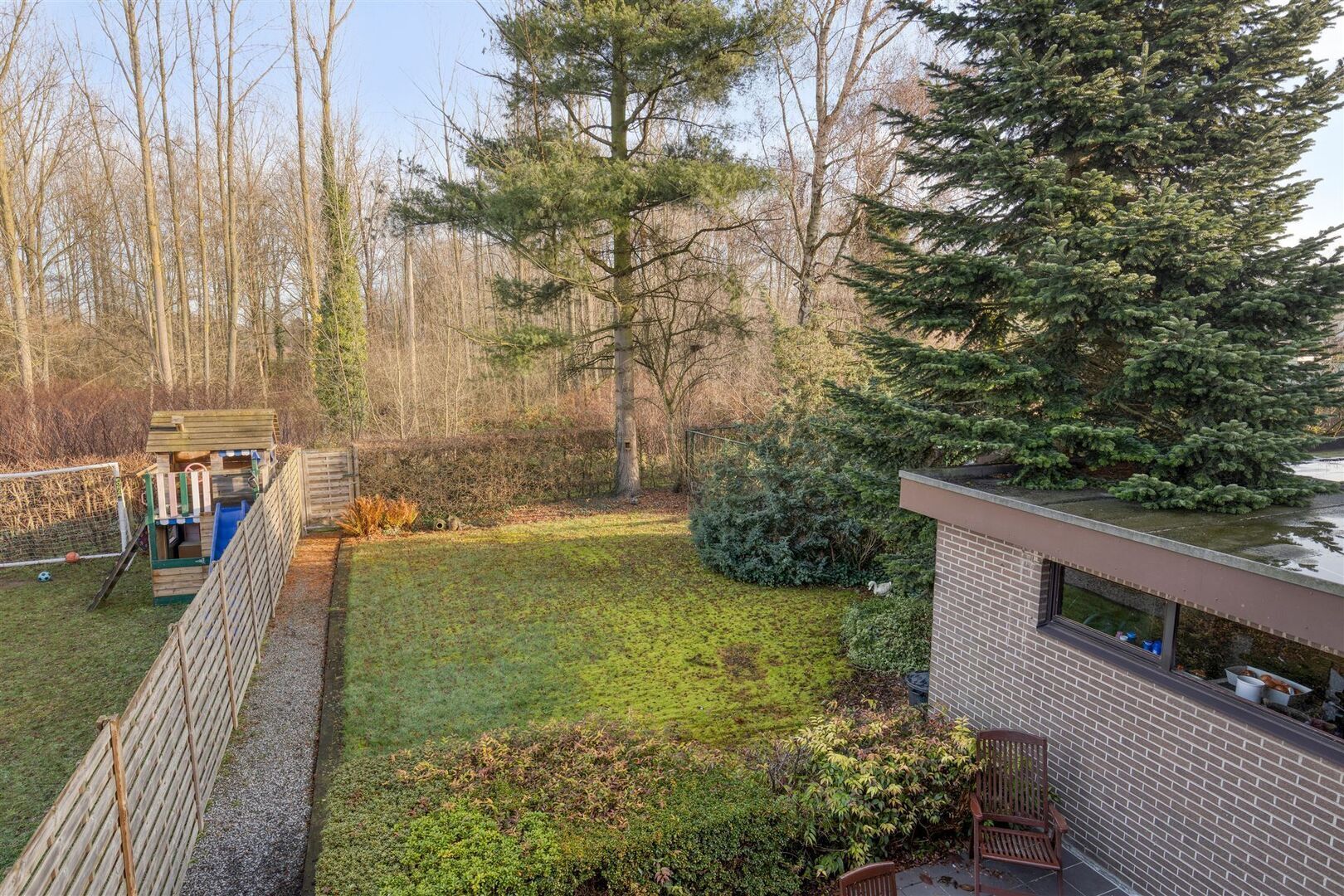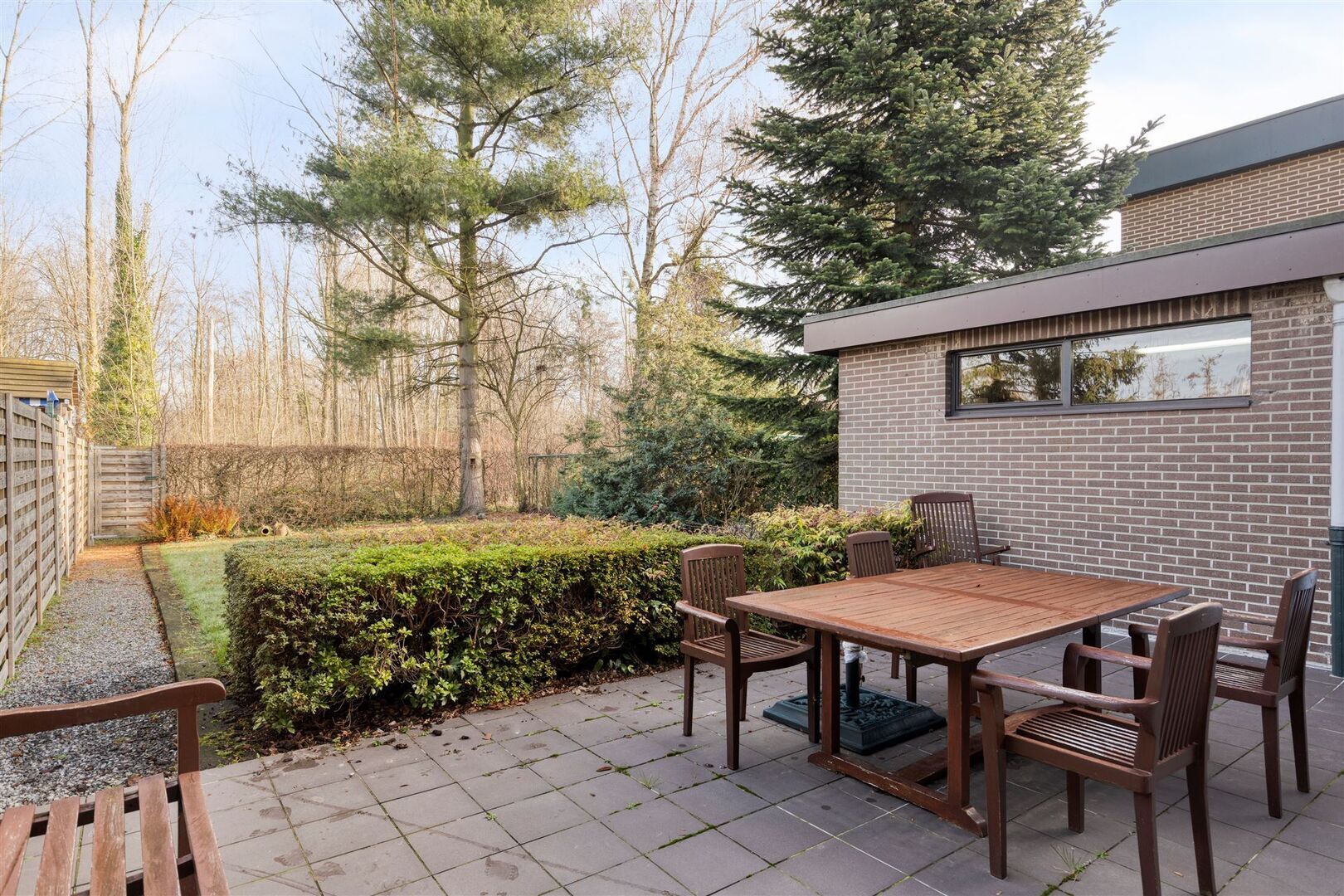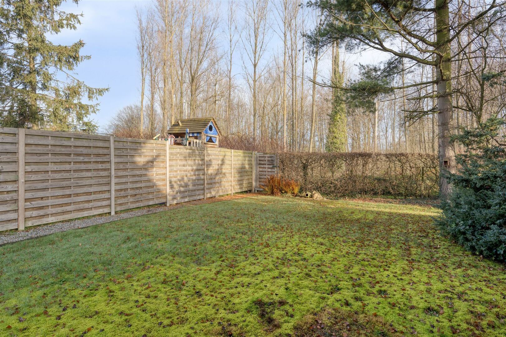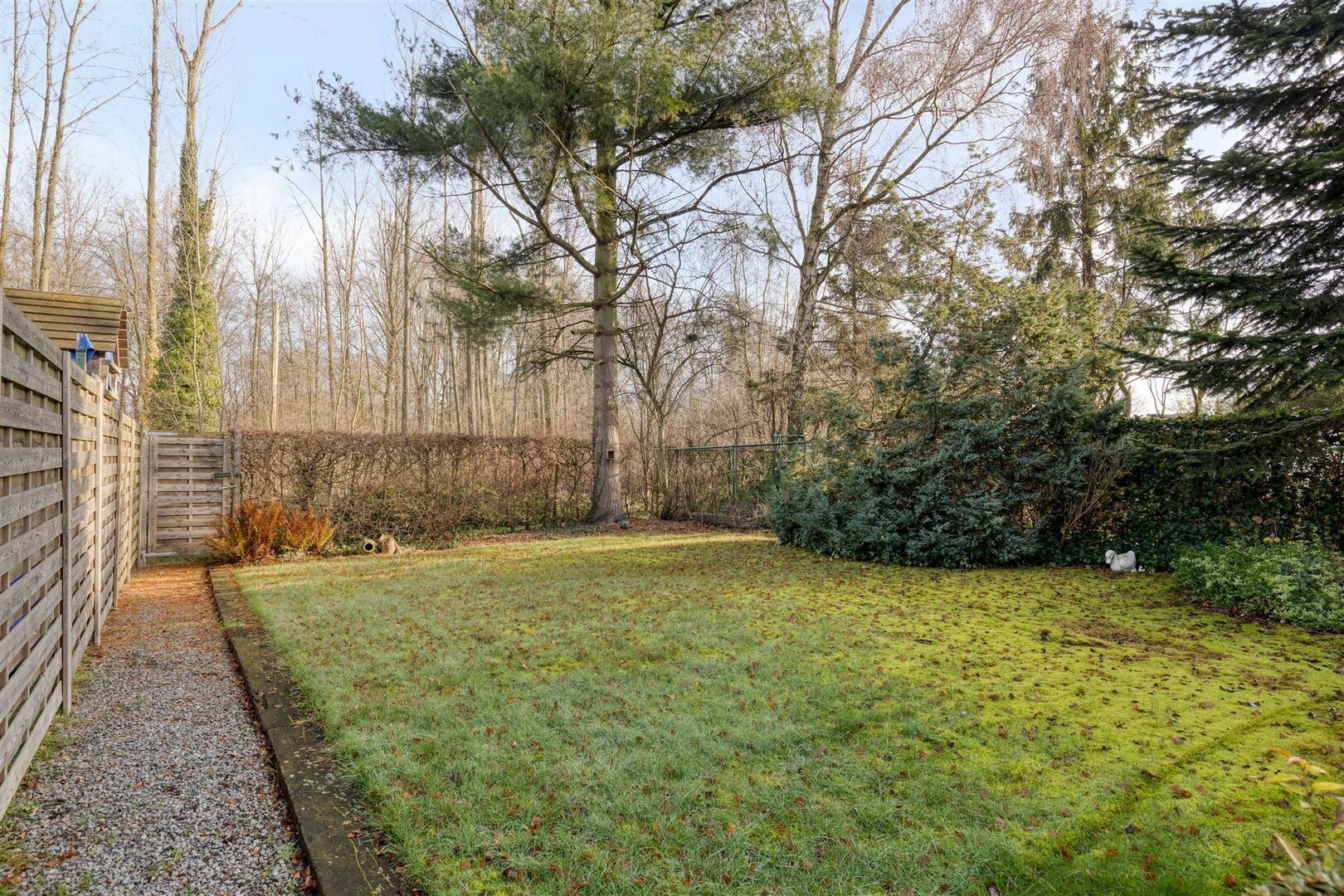 Leuke tuin met veel privacy en zicht op achtergelegen bos.