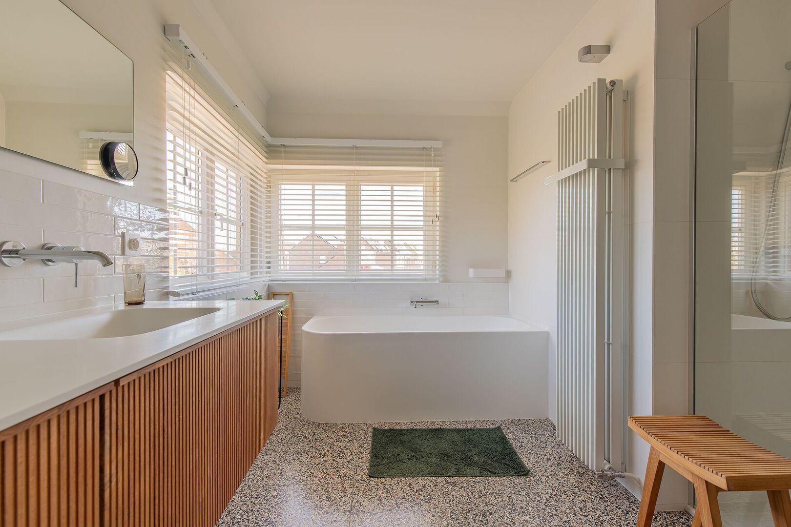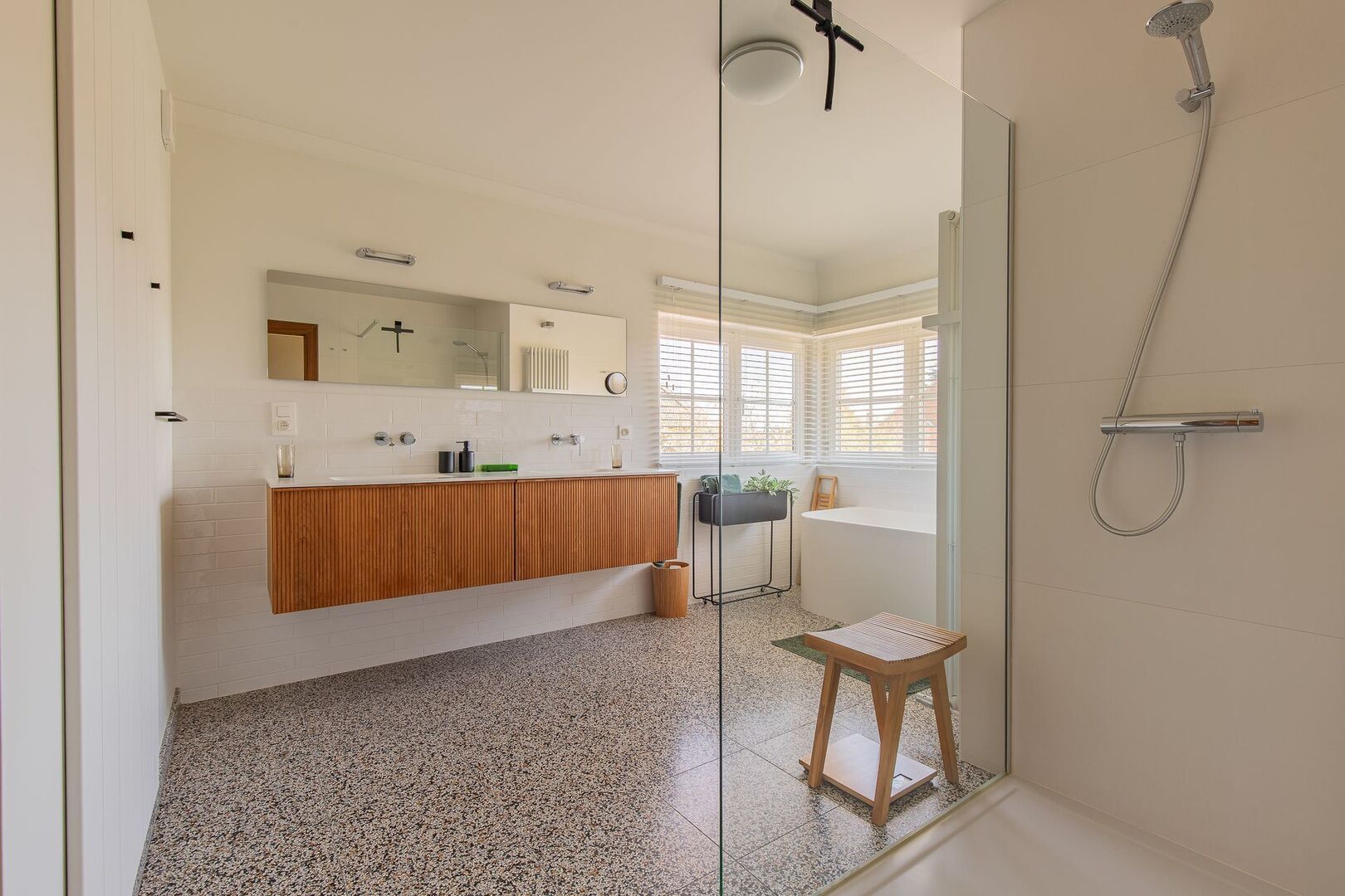 Inkomhal: Nachthal / 4 ruime slaapkamers (4,1 x 4m; 3,7 x 3,16m; 3,64 x 2,46m; 3,7 x 2,76m) met houten plankenvloeren / recente badkamer met hedendaags design uitgerust met dubbele wastafel, inloopdouche en ligbad.