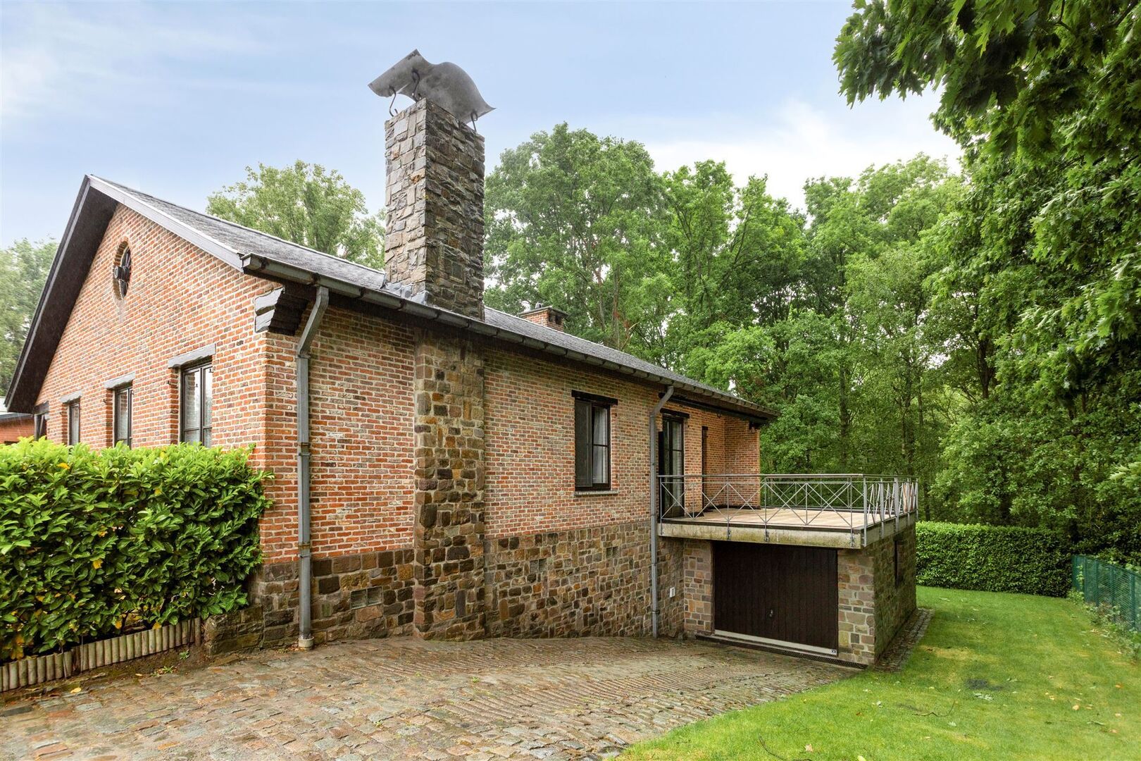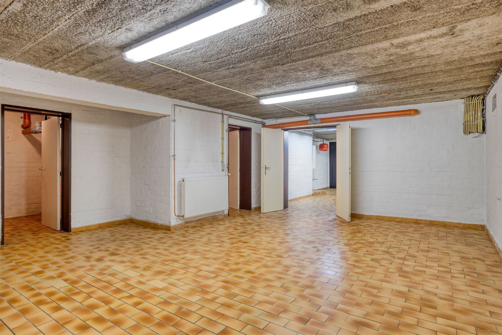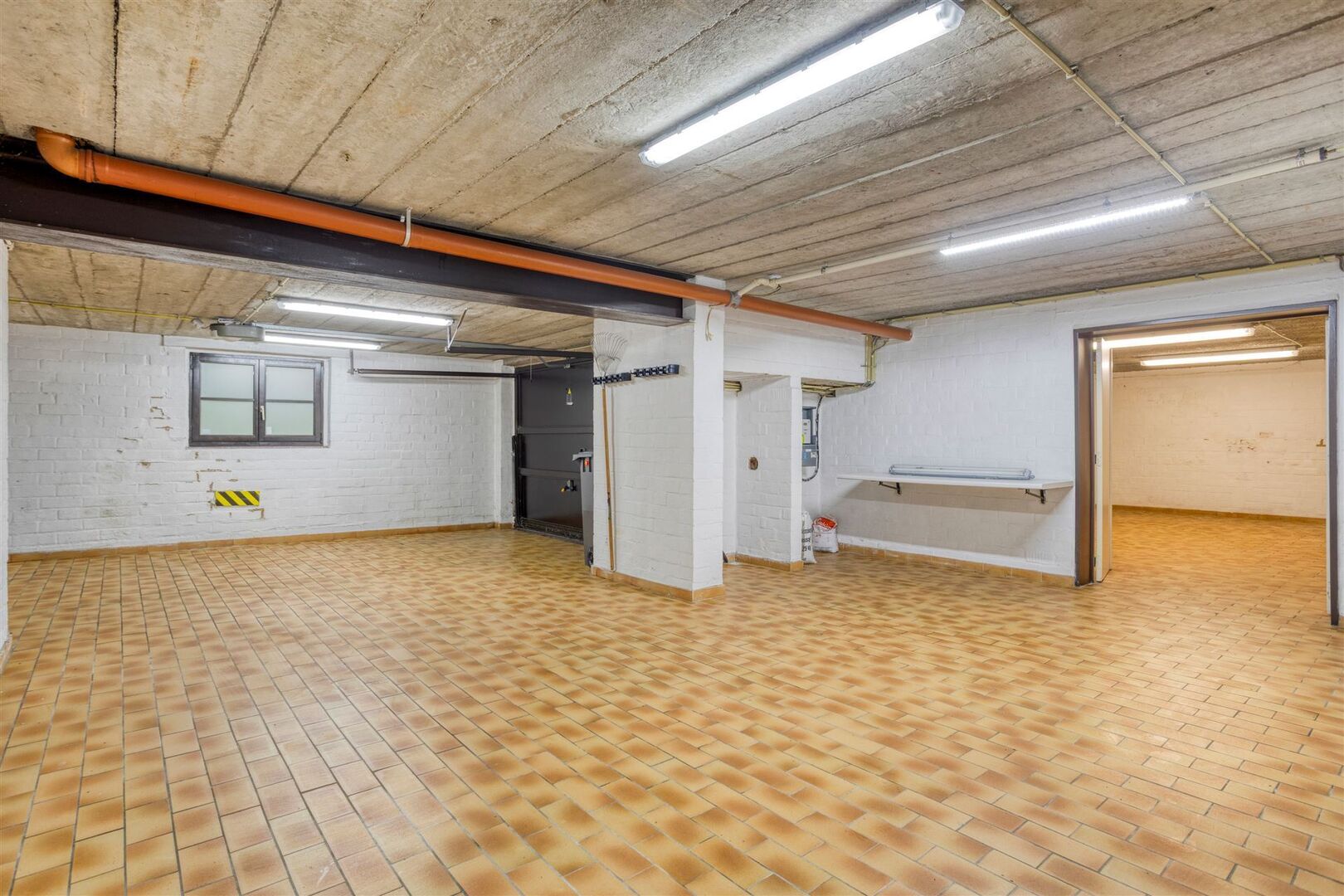 Kelder (tuinniveau) (volledig onderkelderd): slaapkamers of bureau (4,2 x 3,7m) / meerdere kelders / wasplaats / grote garage.