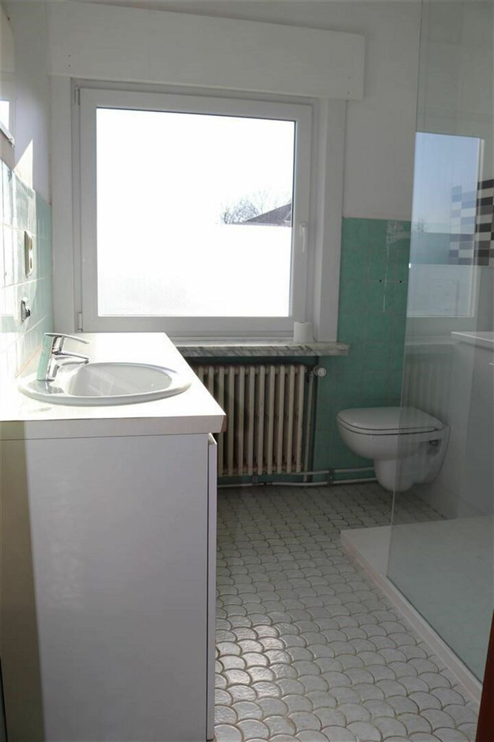 1ste verdieping: Nachthal / 3 slaapkamers (3,7 x 3,4m; 3,5 x 3,4m; 3,1 x 2m) / badkamer (2,3 x 2m) met wastafel, inloopdouche en wc.