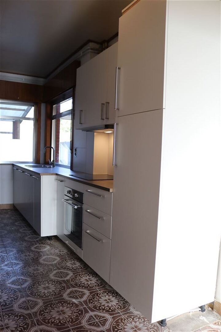 Gelijkvloers: Living met eetplaats (38m²) / veranda (3,6 x 2m) met toegang tot terras en tuin / ingerichte keuken (17m²) met toegang tot keldertje / berging met was- en stookplaats (3,3 x 2,1m) / wc.