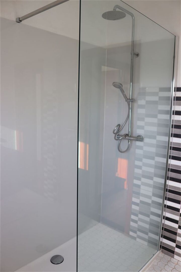 1ste verdieping: Nachthal / 3 slaapkamers (3,7 x 3,4m; 3,5 x 3,4m; 3,1 x 2m) / badkamer (2,3 x 2m) met wastafel, inloopdouche en wc.