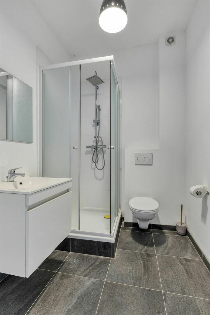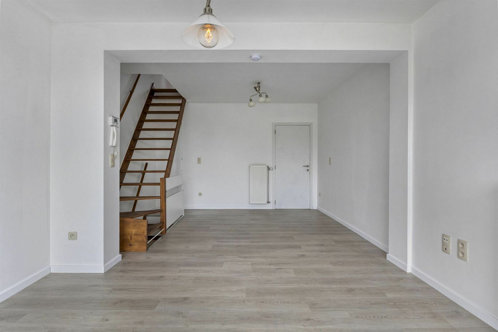 1ste verdieping: lumineuze leefruimte (6,5m x 4,1m) die uitgeeft op balkon / ruime slaapkamer (3,93m x 3m) / badkamer voorzien van ligbad met douchemogelijkheid en wc.