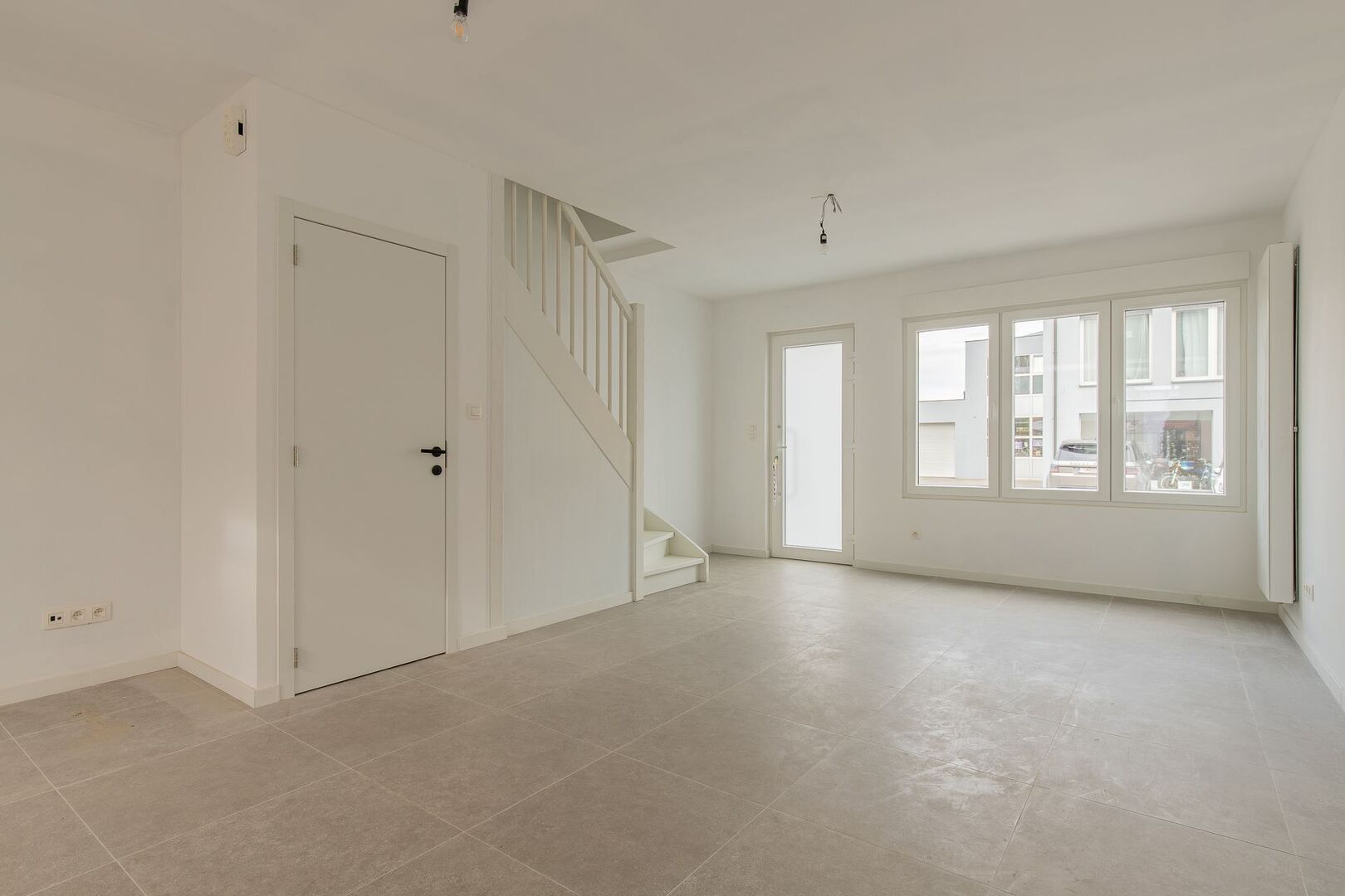 Gelijkvloers: Ruime living met eetplaats en ingerichte keuken (43m²) met toegang tot terras / berging met was- en stookplaats / wc met handwas.