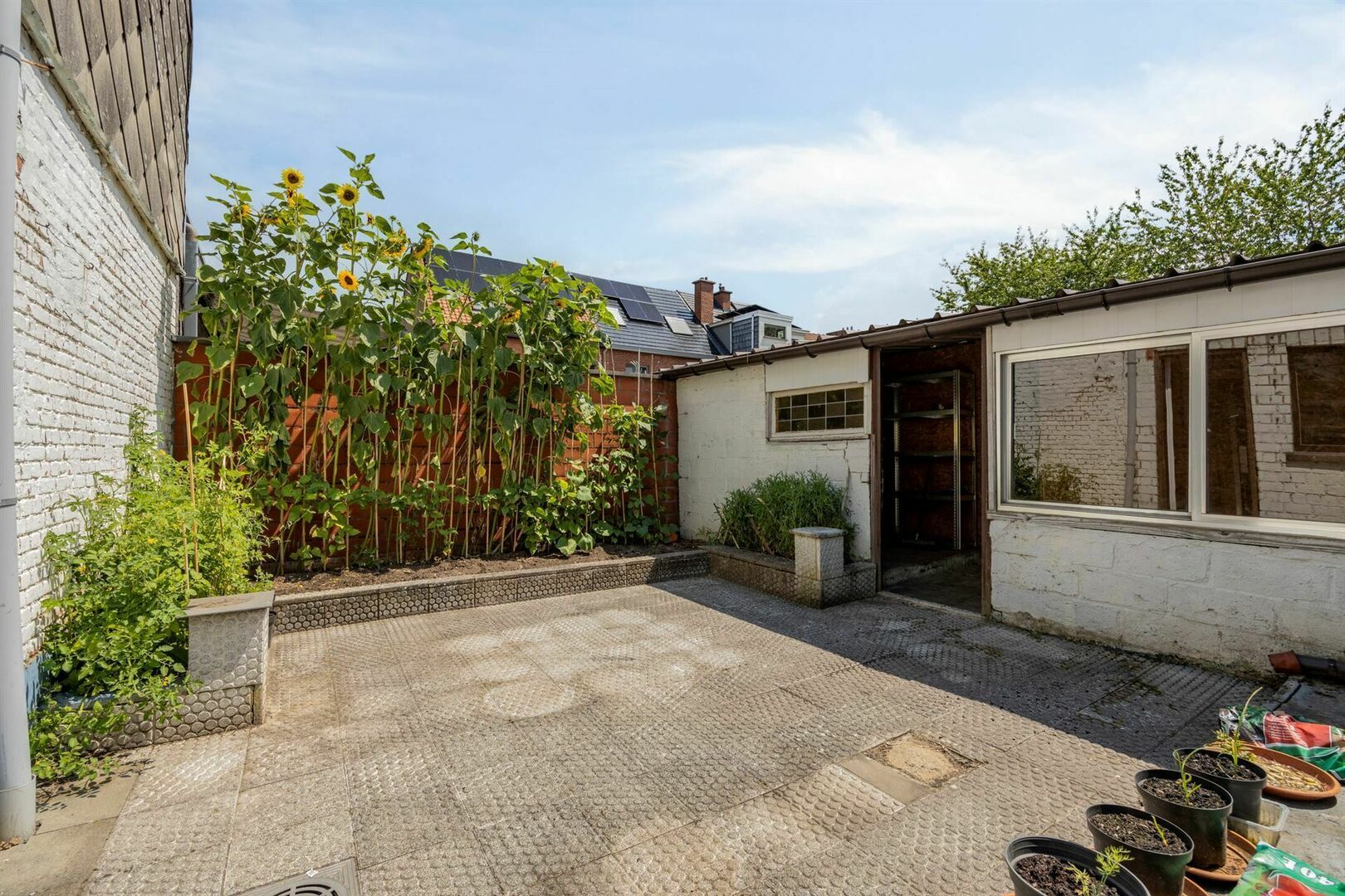 Het terras - koer is ook bereikbaar via een doorgang aan de rechterkant van de gevel.