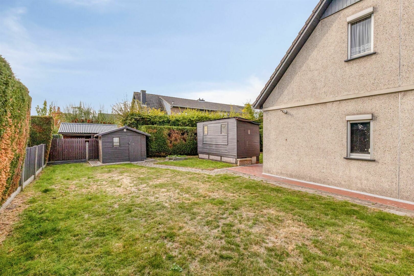 Leuke, zuidelijk georiënteerde tuin / oprit met parkeermogelijkheid.