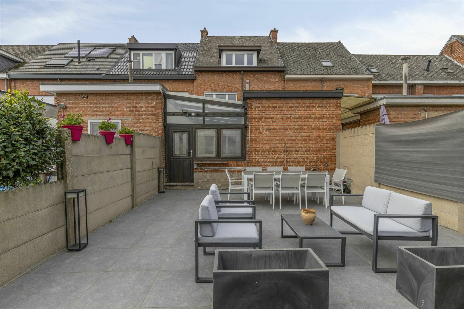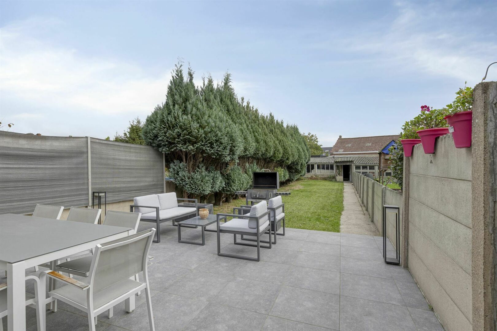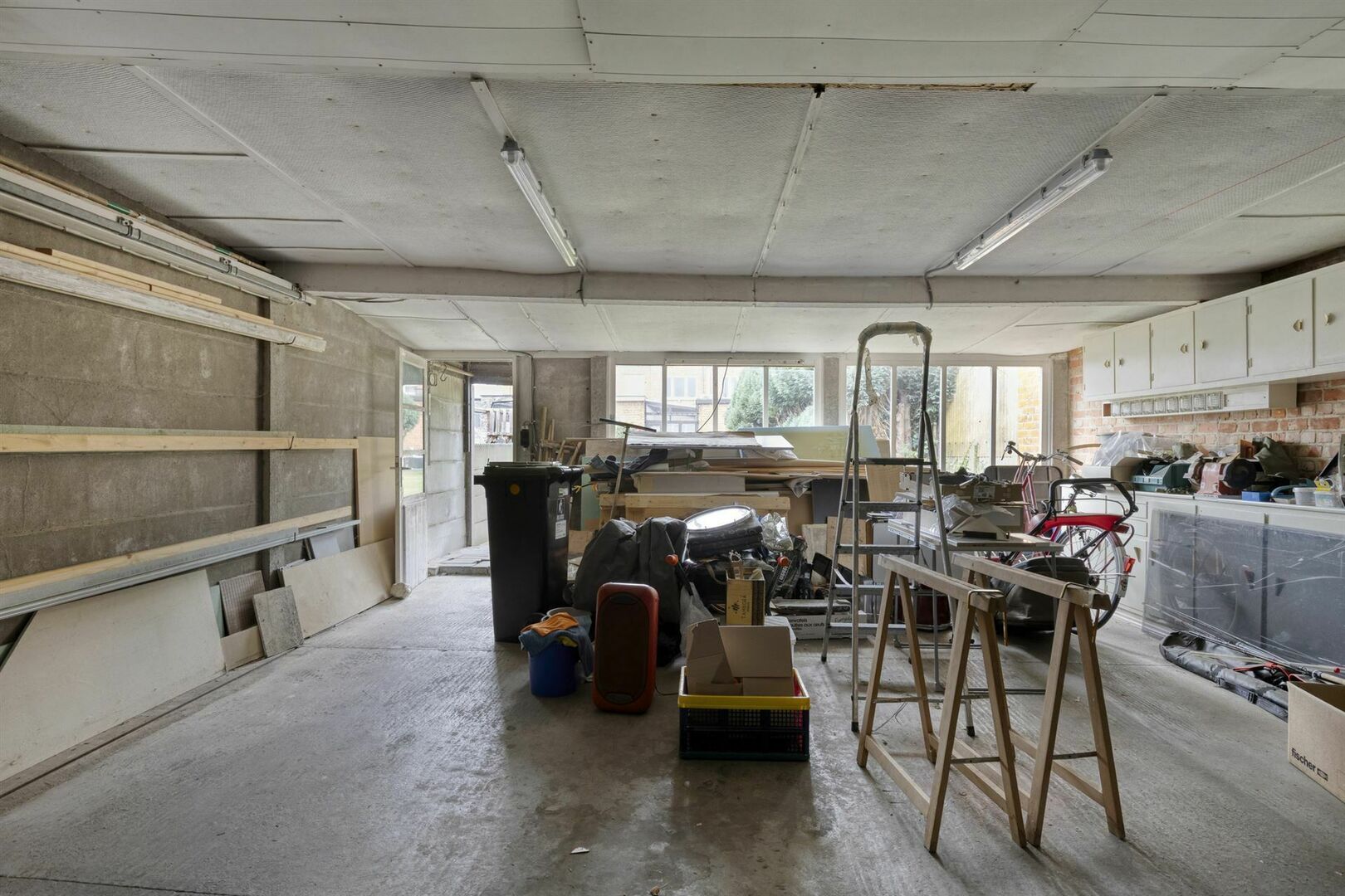 Aangenaam terras en leuke tuin met oostelijke oriëntatie / ruime garage (42 m²) bereikbaar via uitweg achteraan perceel.