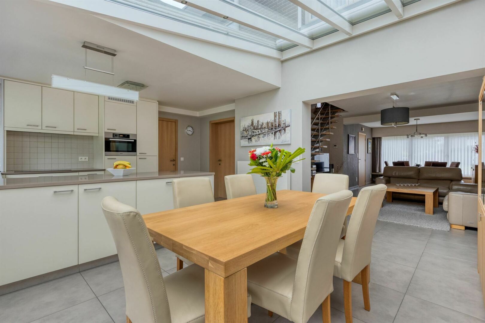De nabijheid van de N16 verzekert een vlotte bereikbaarheid. De verzorgde woning werd de afgelopen jaren grondig gerenoveerd en uitgebreid met een mooie aanbouw.