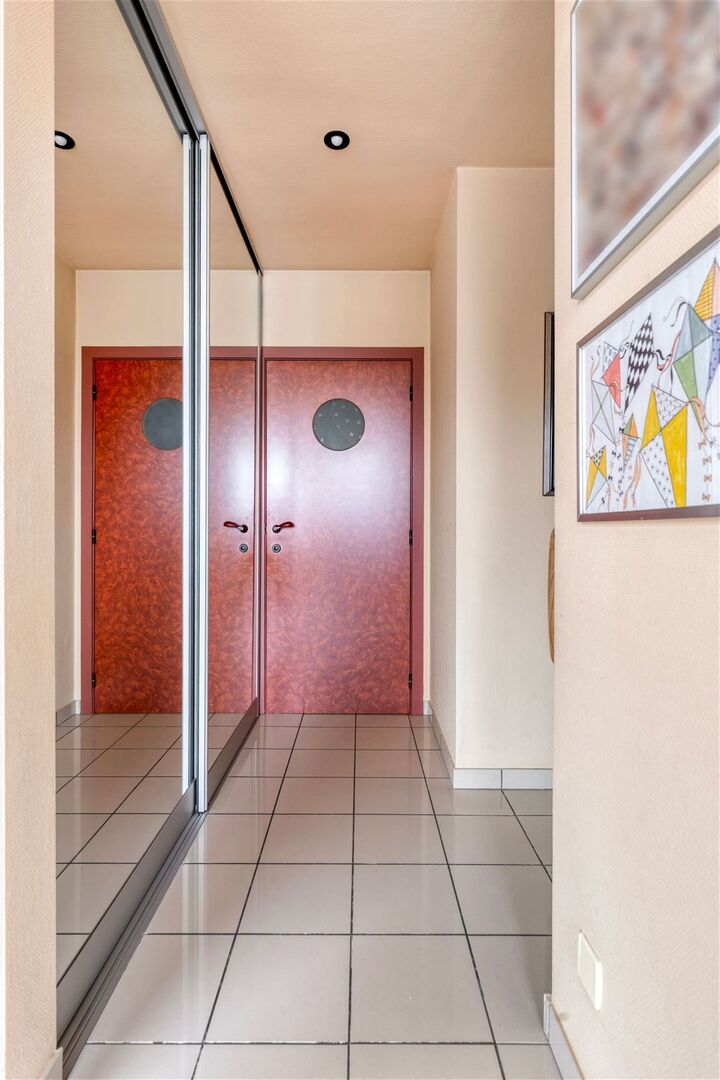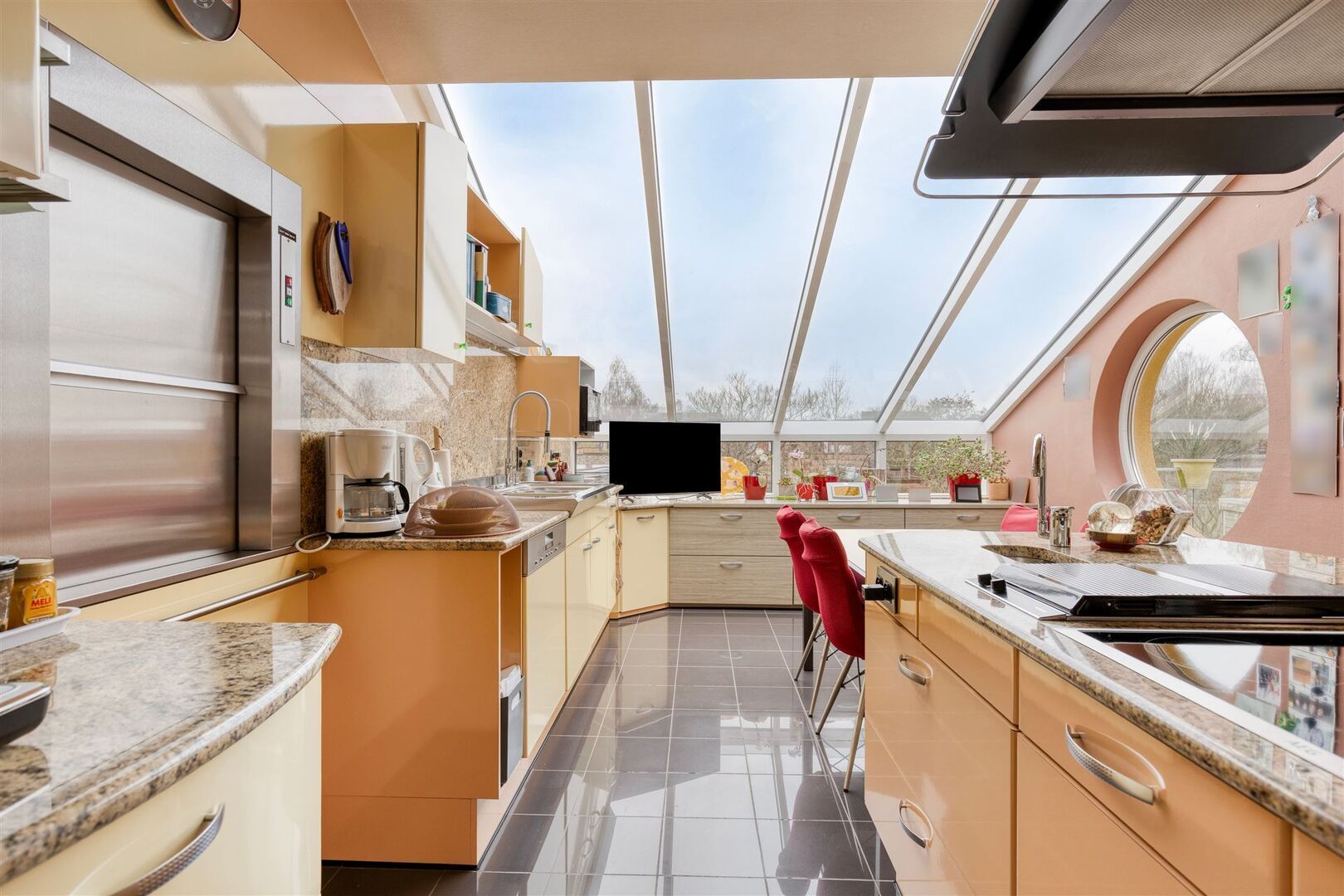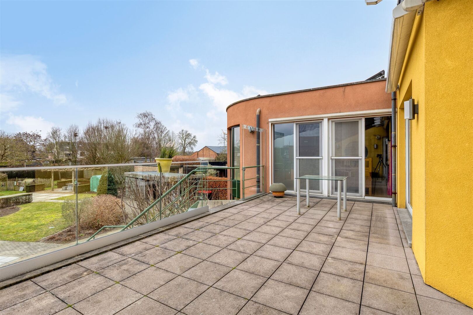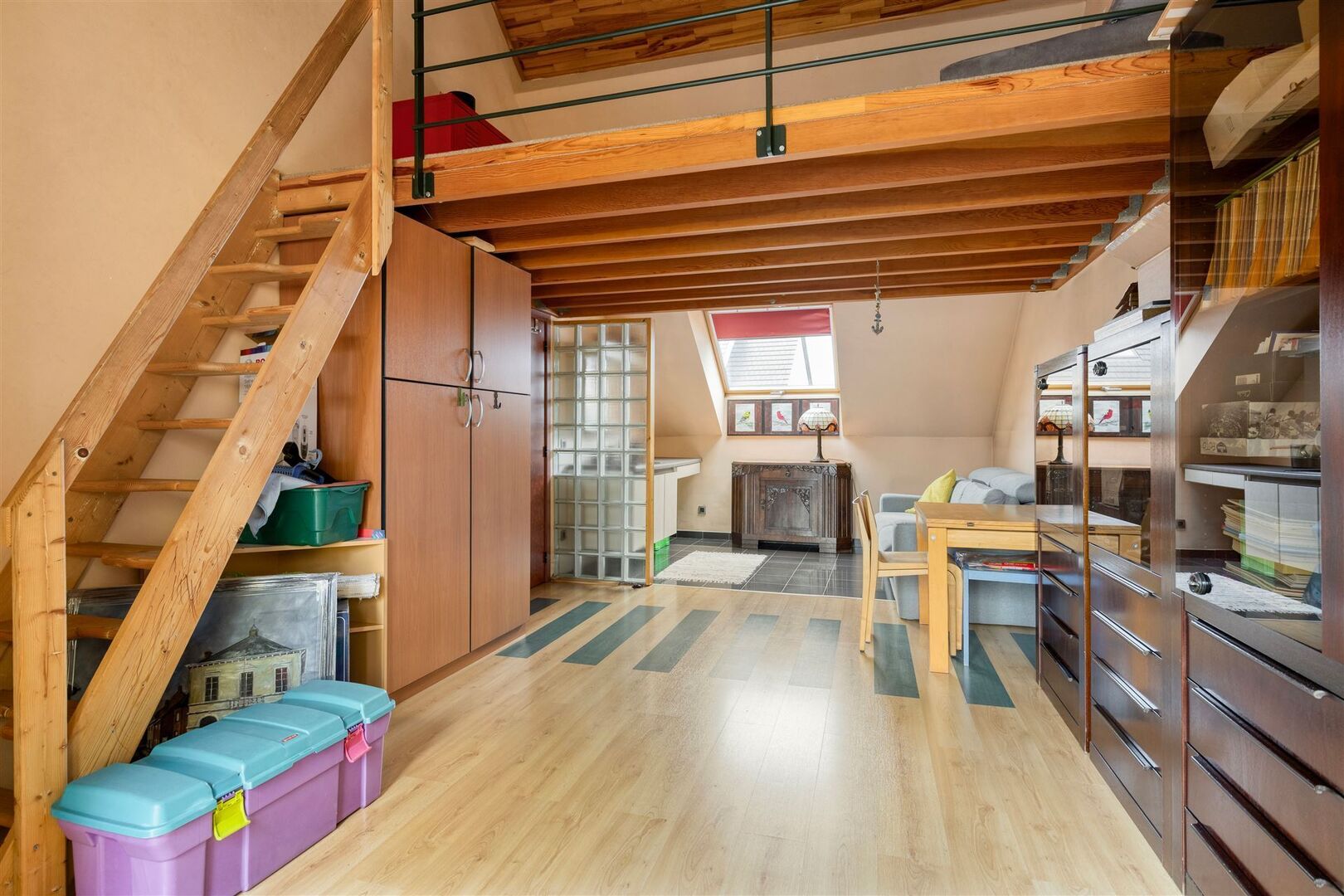 1ste verdieping: Grote traphal met vide en bureau / living (62m²) (tot in de nok) met toegang tot zuid-georiënteerd terras (36m²) / super-ingerichte keuken (7,3 x 3,5m) / nachthal met inmaakkasten / wc met handwas / 3 slaapkamers (5,6 x 5m (met dressing); 7,9 x 3,5m (met mezzanine (3,6 x 2,7m) en wastafel); 21m²) / badkamer (18m²) (grenzend aan hoofdslaapkamer) voorzien van wastafel, ligbad met massagefunctie, douche en wc / badkamer - wasplaats met douche (zonder wastafel) (toegang vanuit nachthal).