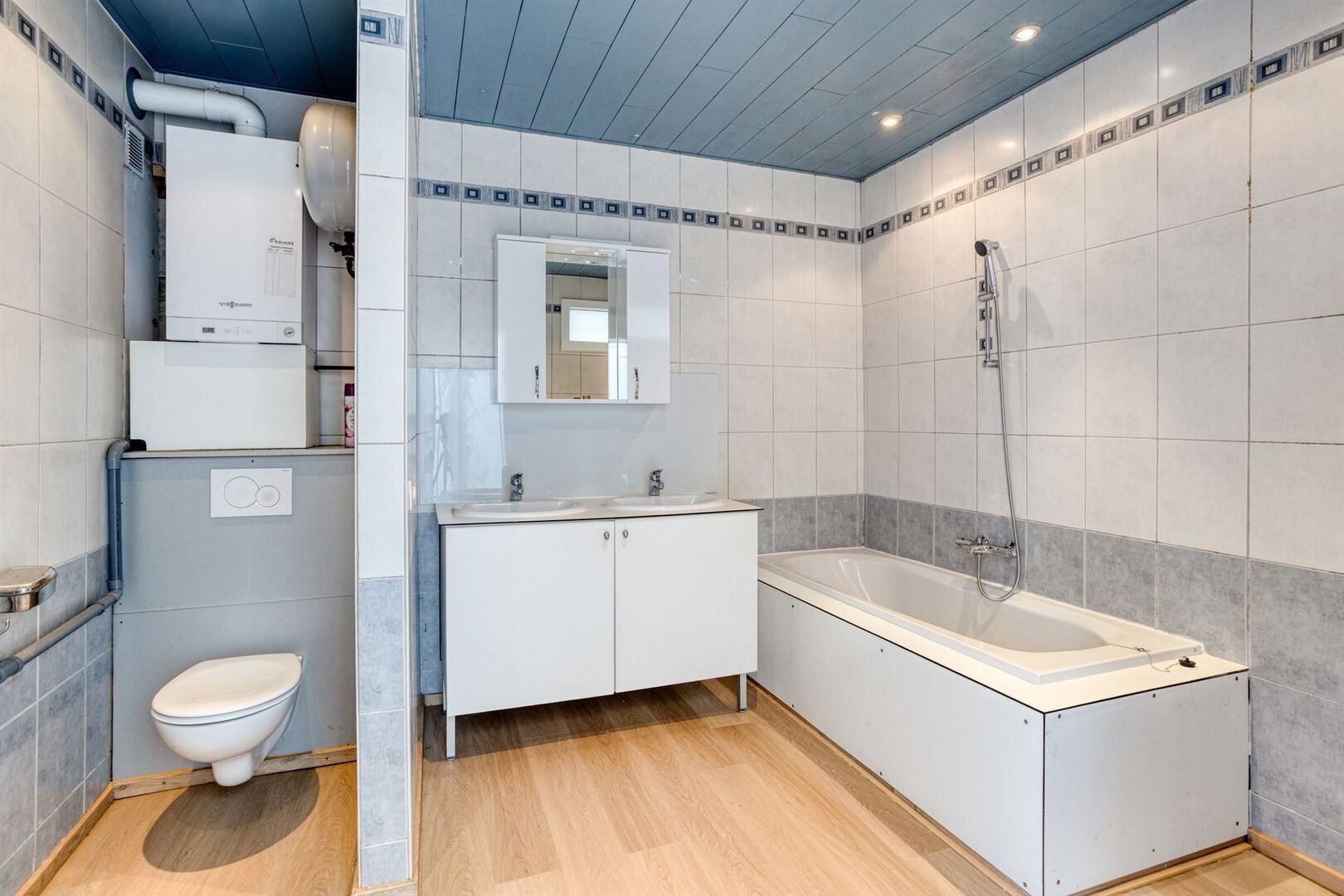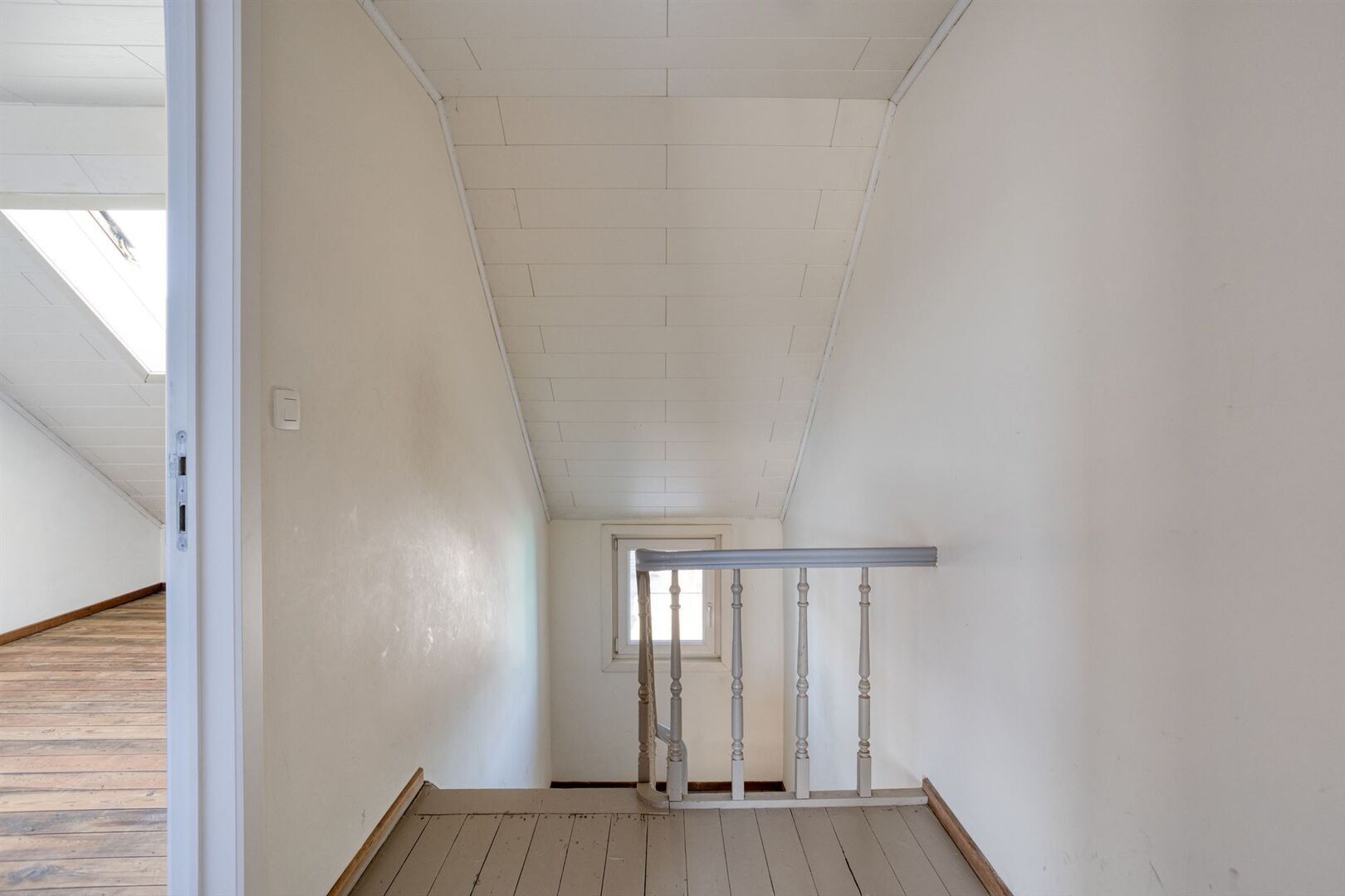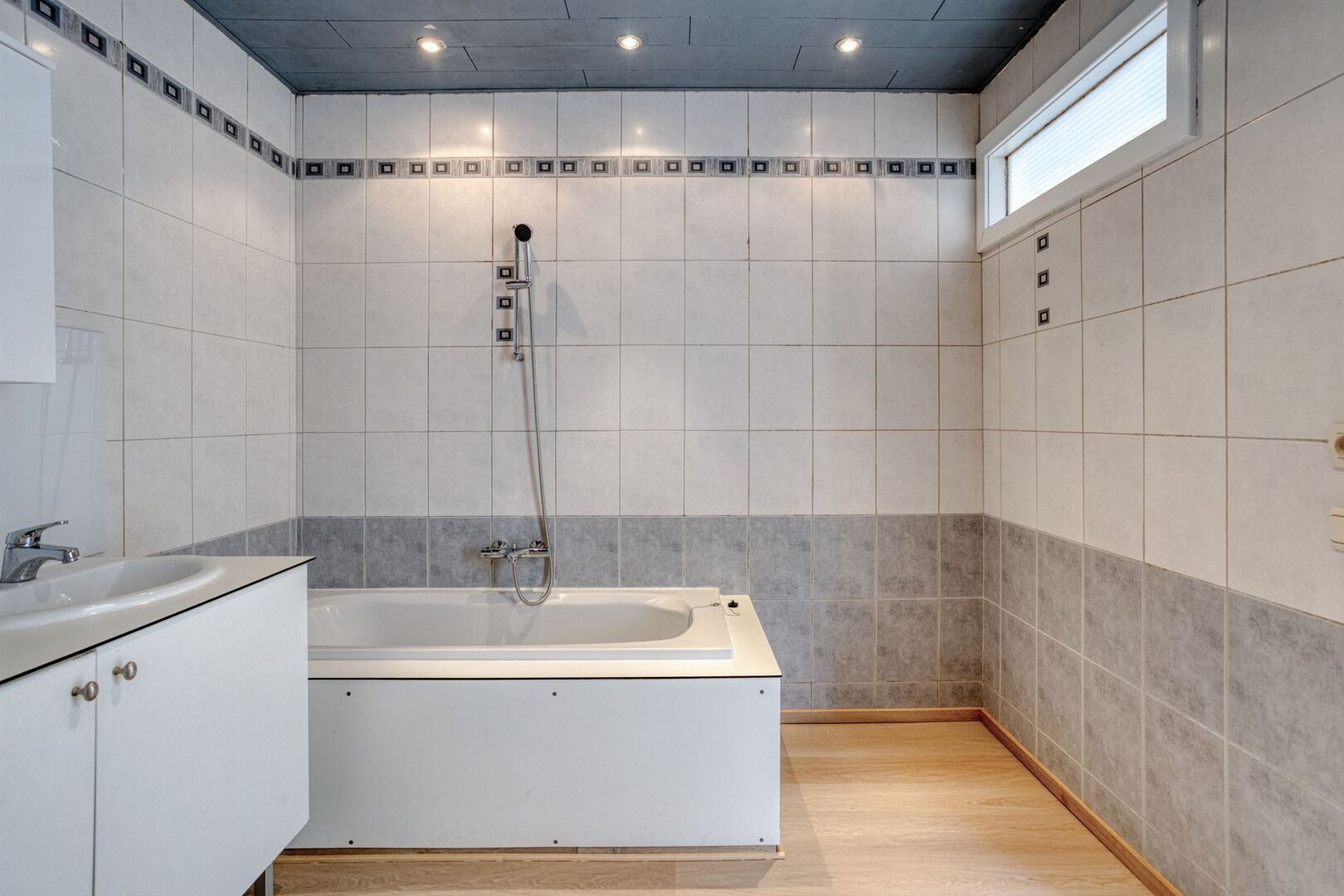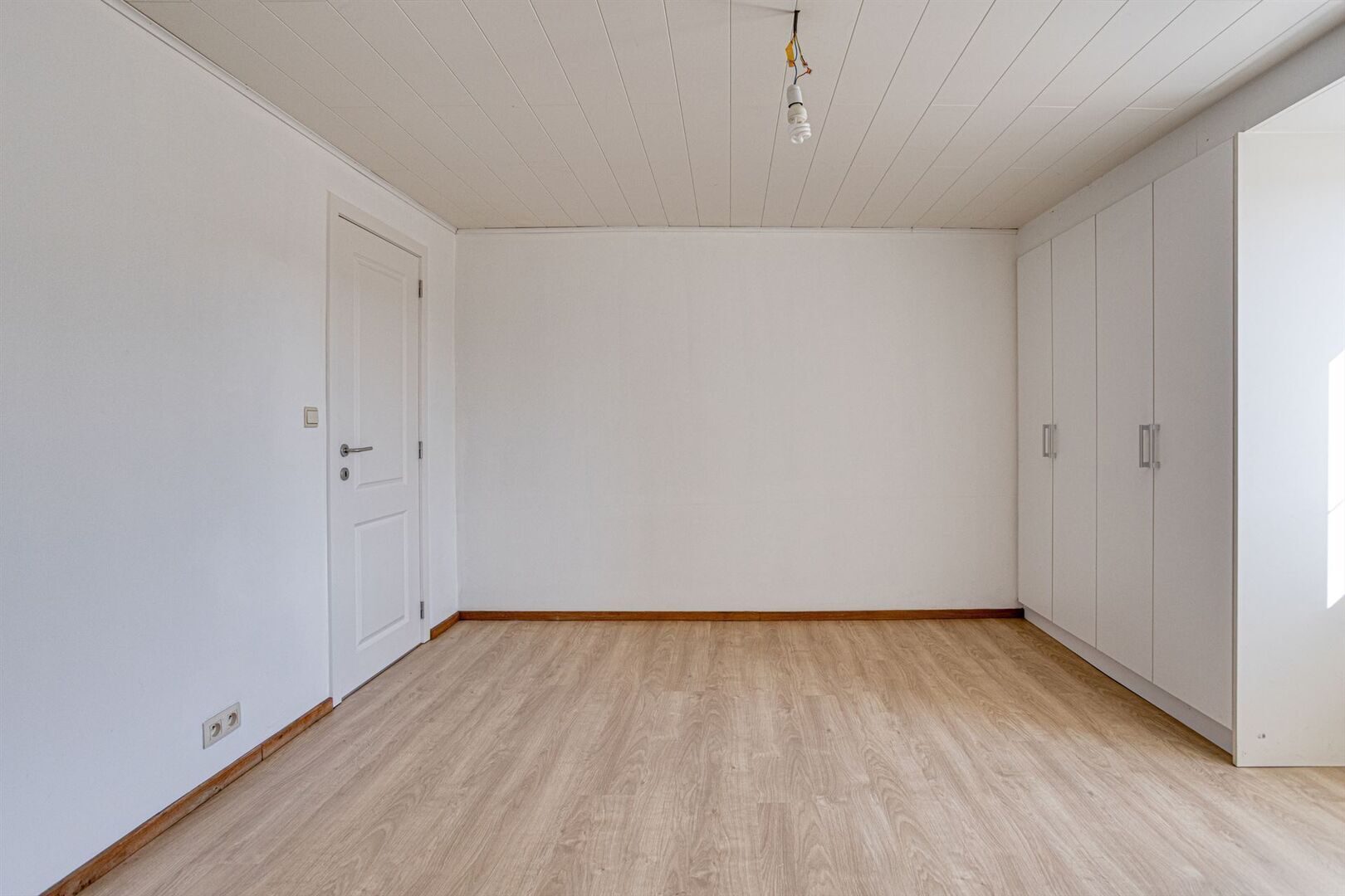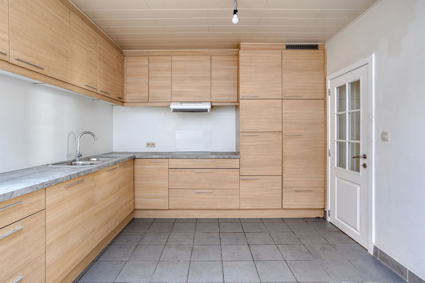 Gelijkvloers: inkomhal / leefruimte met parketvloer (29m²) / ingerichte keuken / badkamer met wc en ligbad / terras en tuin gericht op het westen / plaats voor de bouw van een garage (betonplaat werd reeds gegoten), uitweg mogelijk langs de achterzijde